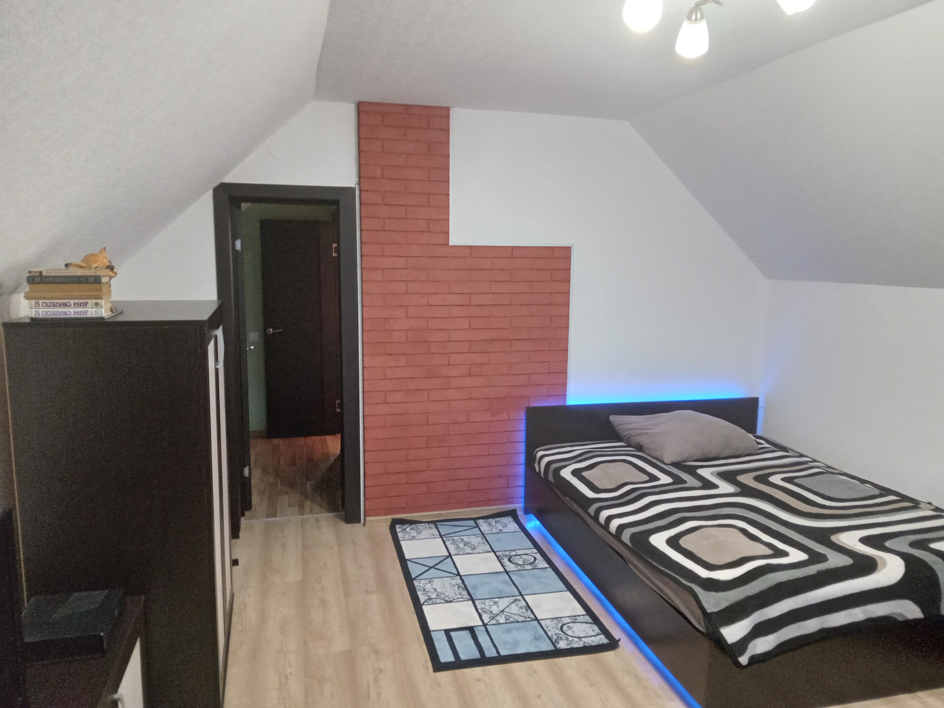 • 1-этаж: коридор 3,20 кв.м., просторная кухня-столовая с двумя панорамными окнами 29 кв.м., две изолированные комнаты 15,8 кв.м. и 15,8 кв.м., санузел 4,8 кв.м. 2-этаж: две уютные изолированные комнаты с прекрасным видом из окон 15 кв.м. и 17,6 кв.м.
