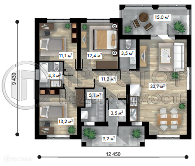 Общая площадь 122 м2