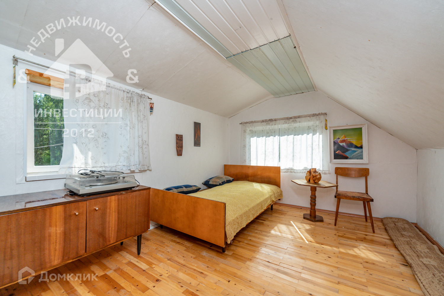 Сделан косметический ремонт: напольное покрытие – деревянная плитка, стены и полоток – вагонка. Второй этаж теплый, небольшая уютная комнатка также с хорошим ремонтом.
