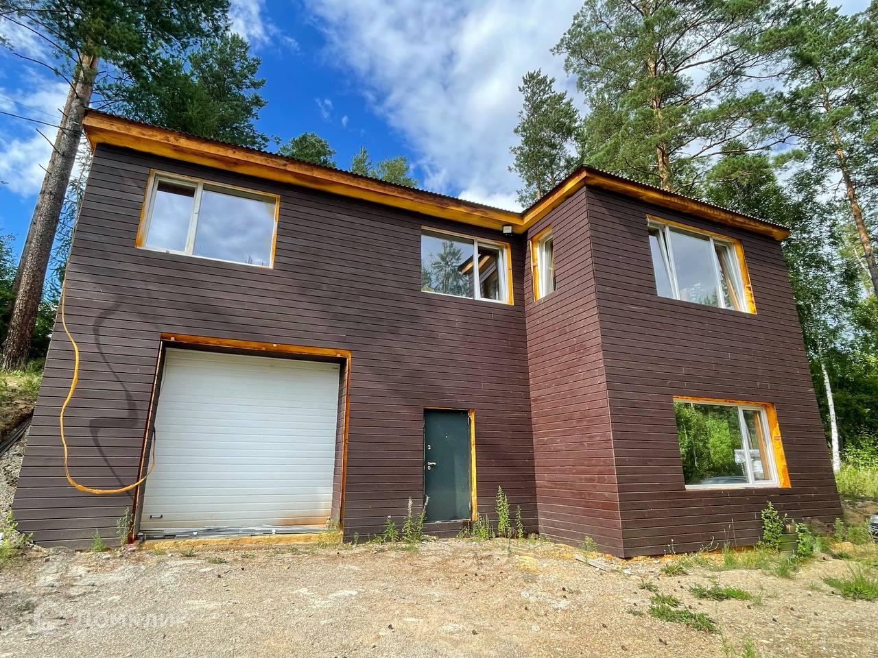 Дом из кирпича , площадью 247 м2 . Обшит деревом (промасляная сосна) , утеплитель ( 5 см пены ППУ). Гидроизоляция в крыше ( мин вата ) . Фундамент — монолит. Гараж (47 м2) с эл воротами и выходом в дом.