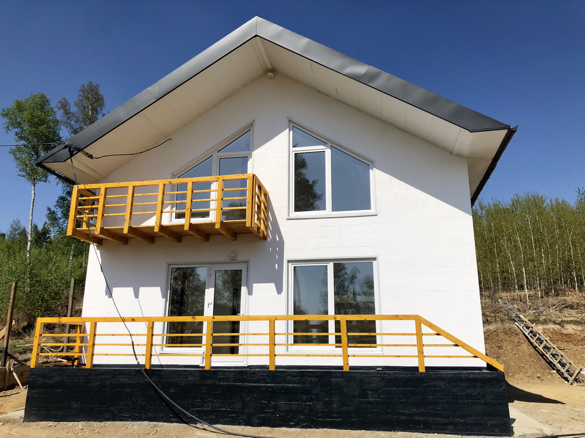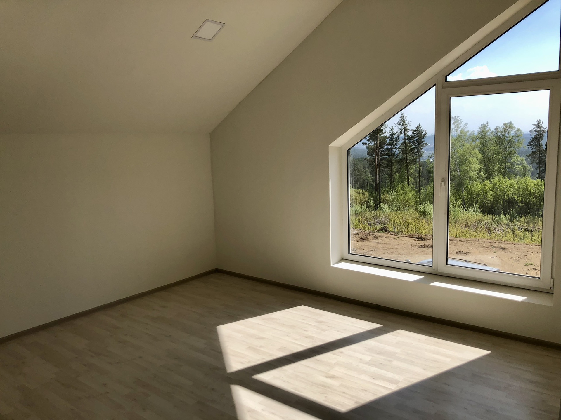 В доме большие панорамные окна с прекрасным видом на сосновый лес, поэтому во всех комнатах всегда много света и уюта.