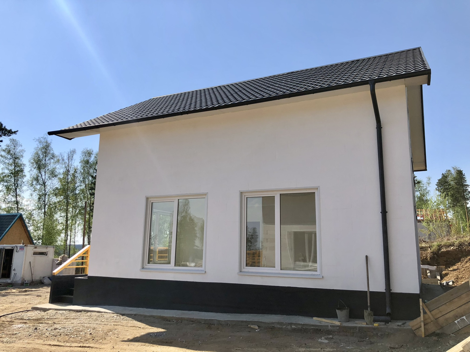 Дом: монолитный фундамент. Стены Байкальский автоклавный газобетон, центральное водоснабжение, септик. Все коммуникации заведены. Отопление: водяной теплый пол.