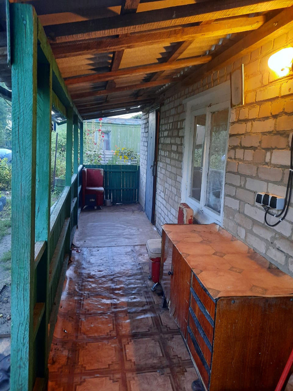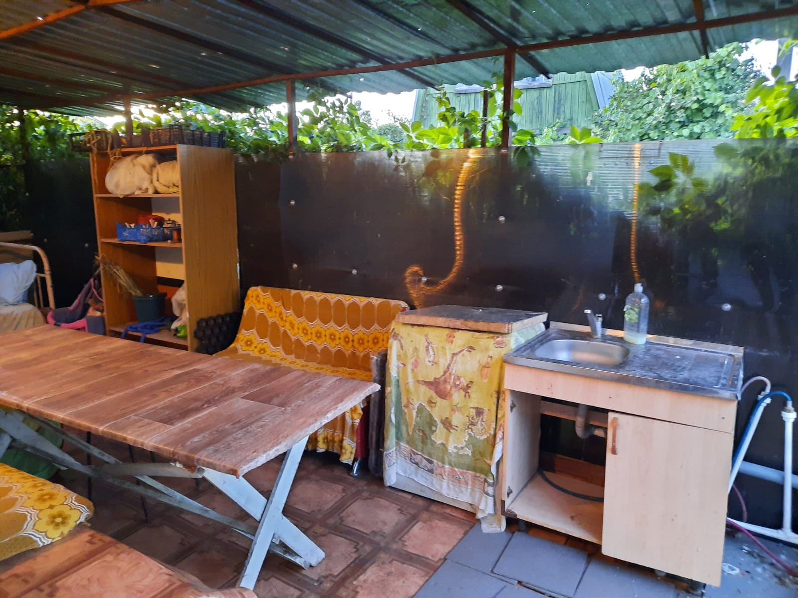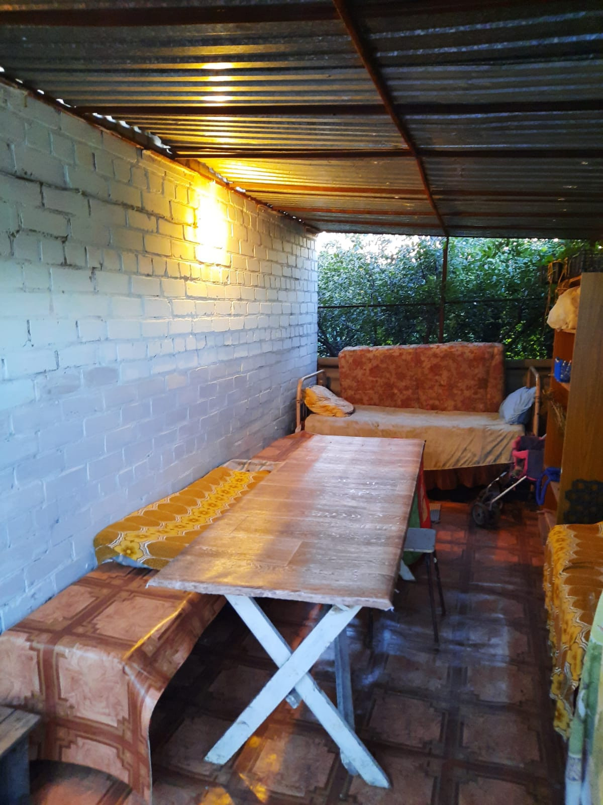 к дому пристроена уютная большая беседка со столом и лавками