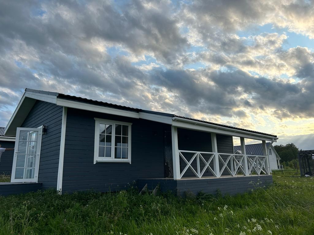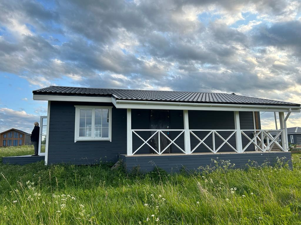 Поселок построен в скандинавском стиле, уже заселено более 100 домов.