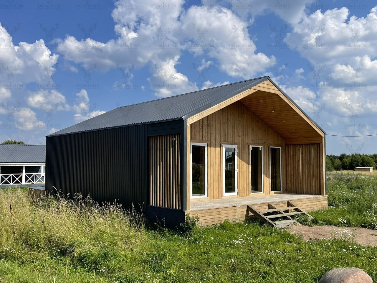 Дом построен по технологии финский каркас в современном стиле БАРНхаус.