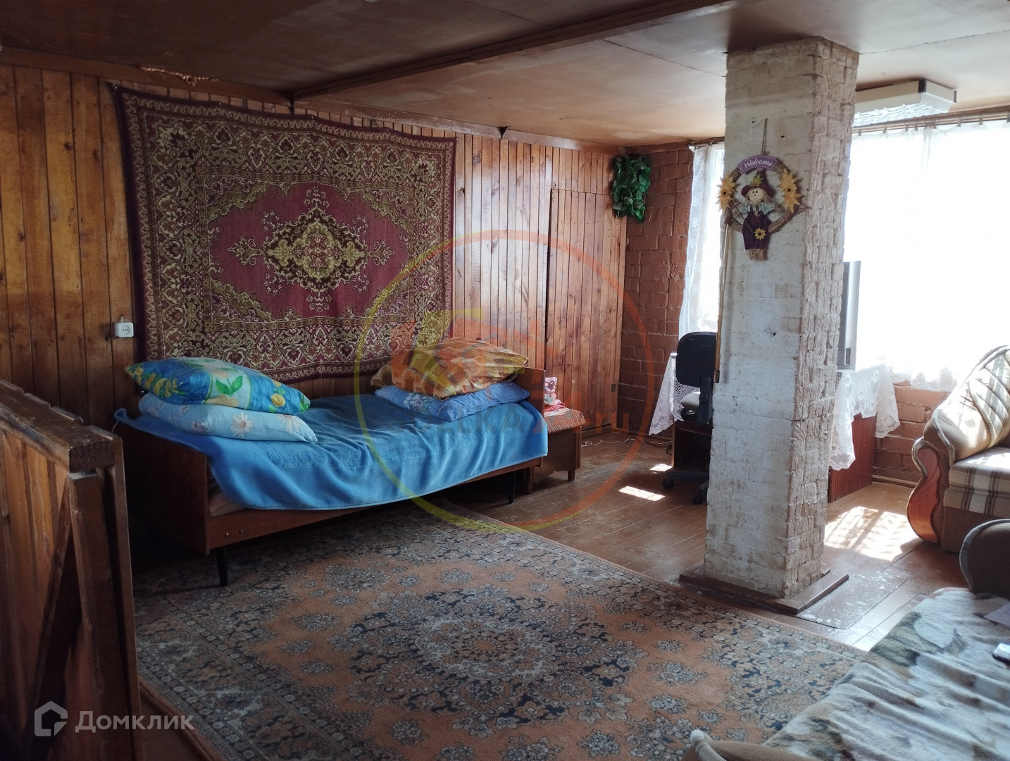 На 5 сотках расположен двухэтажный дачный дом из шлакоблока 49 кв. м. Полностью мебелированный.