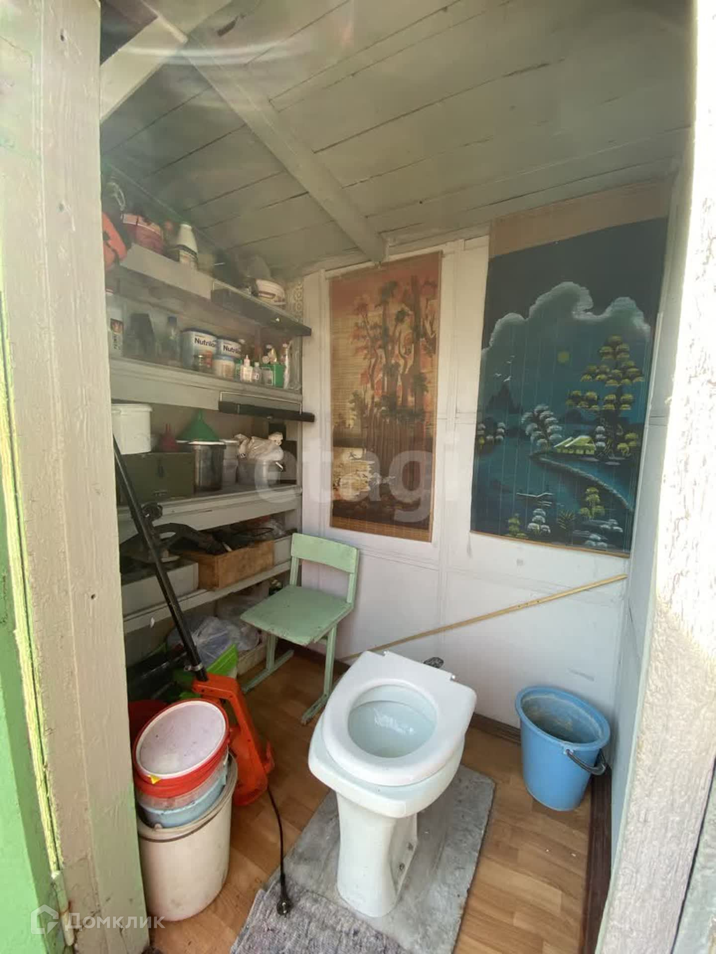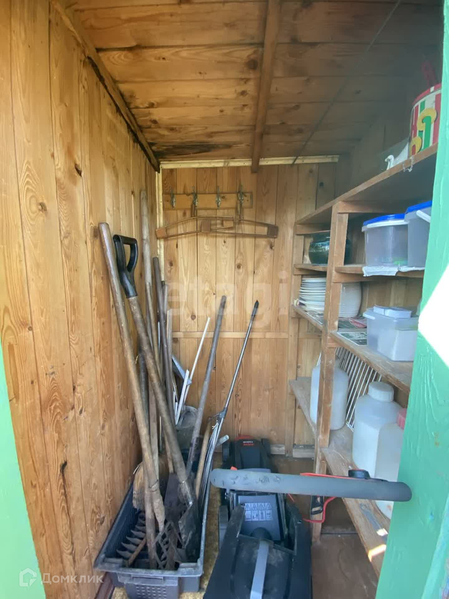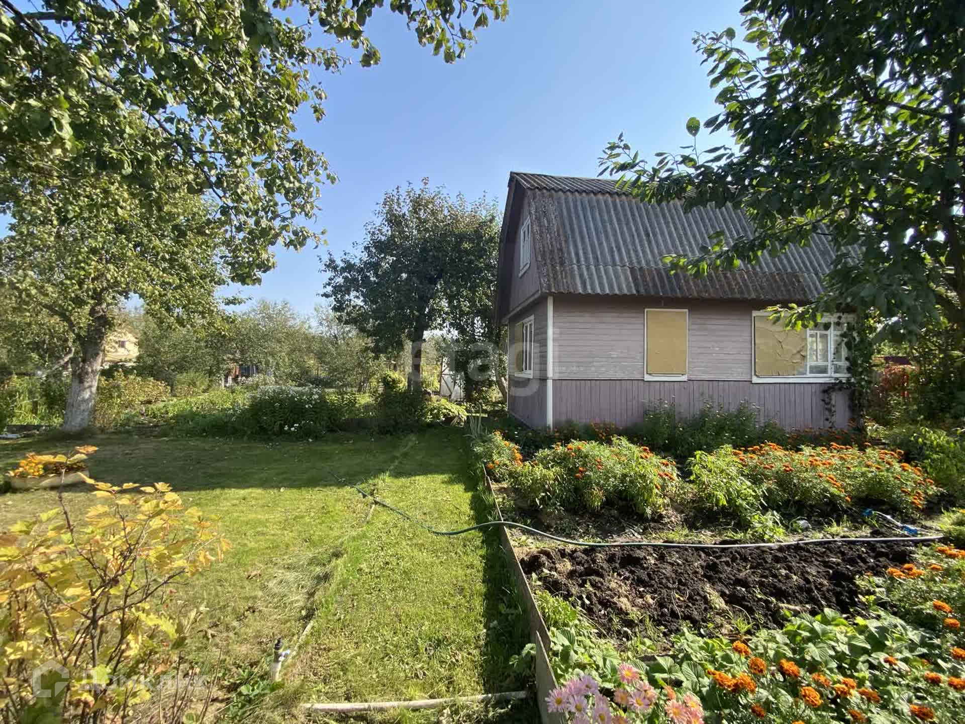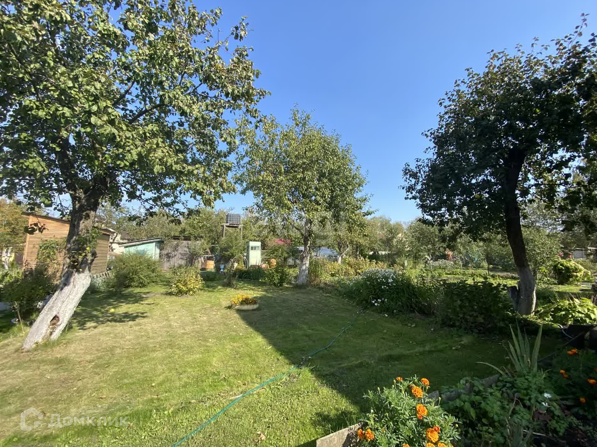 Участок разработан, плодовые деревья, ягодные кусты, цветы, огород, газон. Не топит водой участок по весне. Теплица, небольшой хозблок, душ и уличный туалет. Домик деревянный, крыша шифер. В домике две комнаты. Водопровод летний, поливочный.