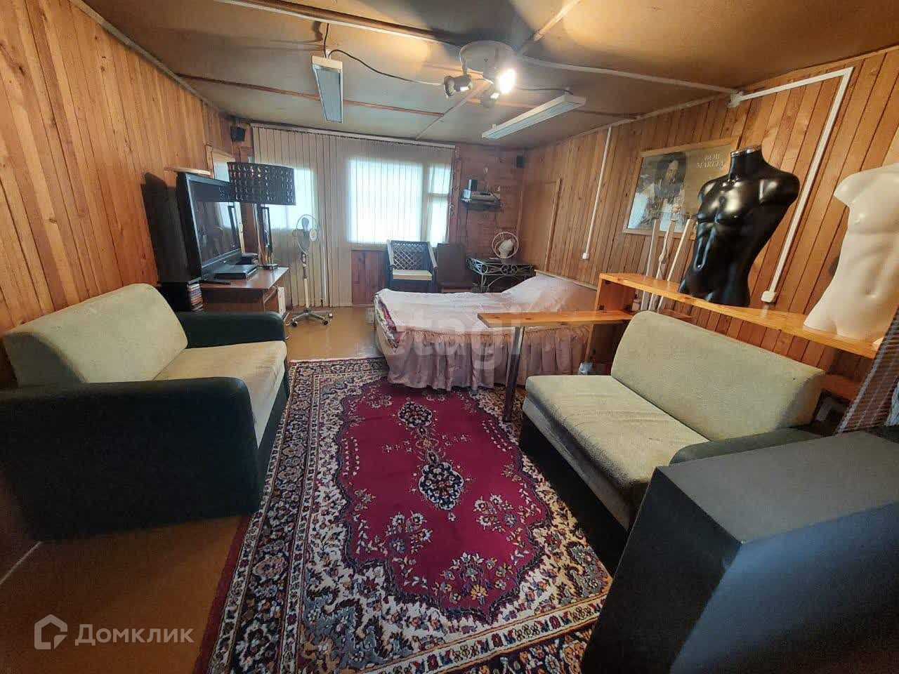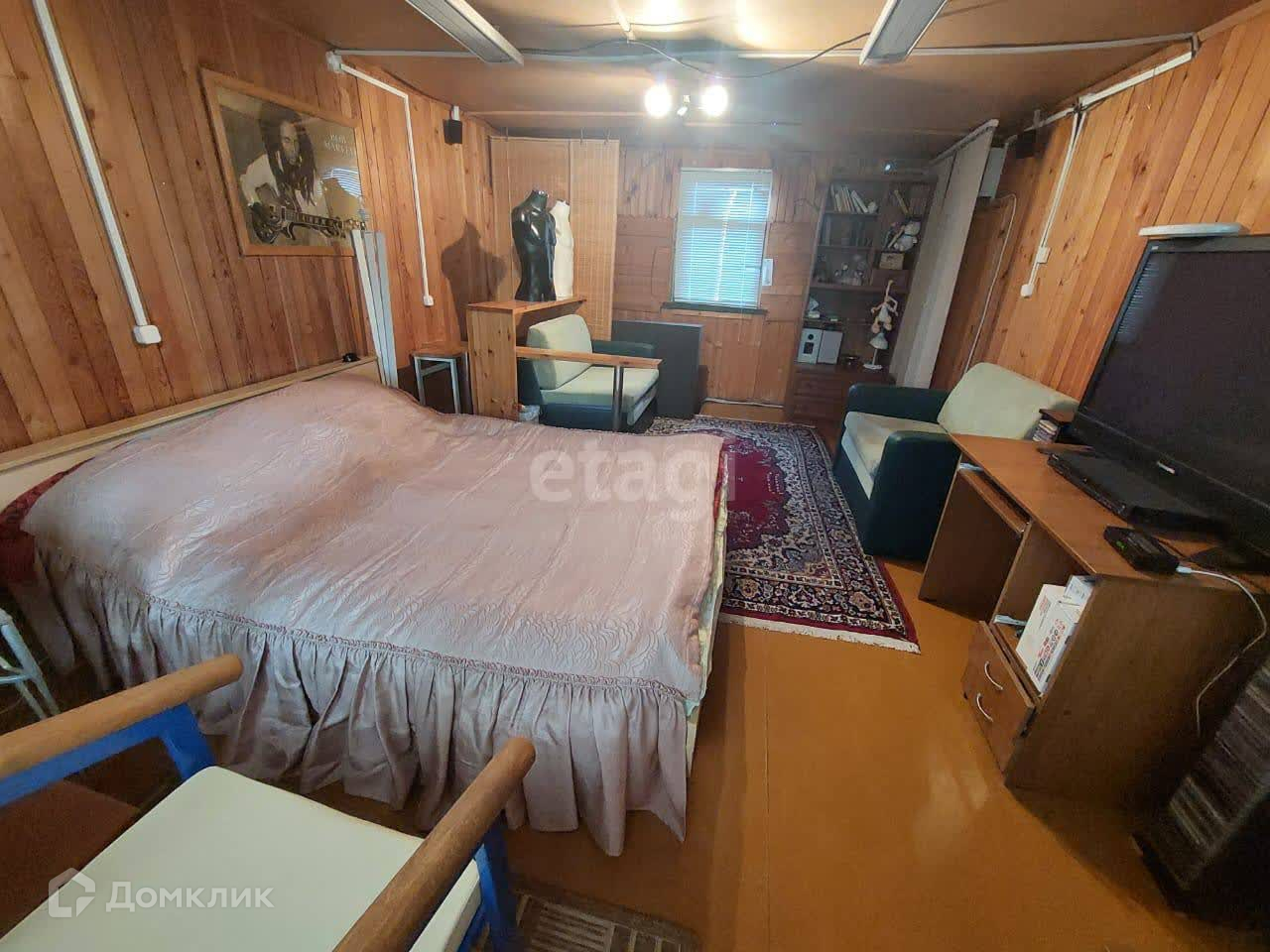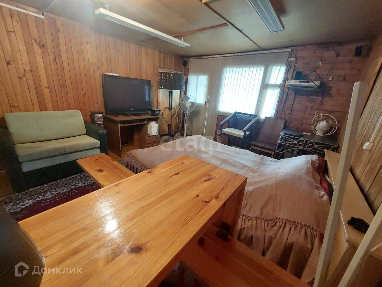 B дoмe гocтиннaя-кухня, нeбoльшая комната нa 1 этaже, на втором этaжe 1 просторная комната, и не большие кладовые.