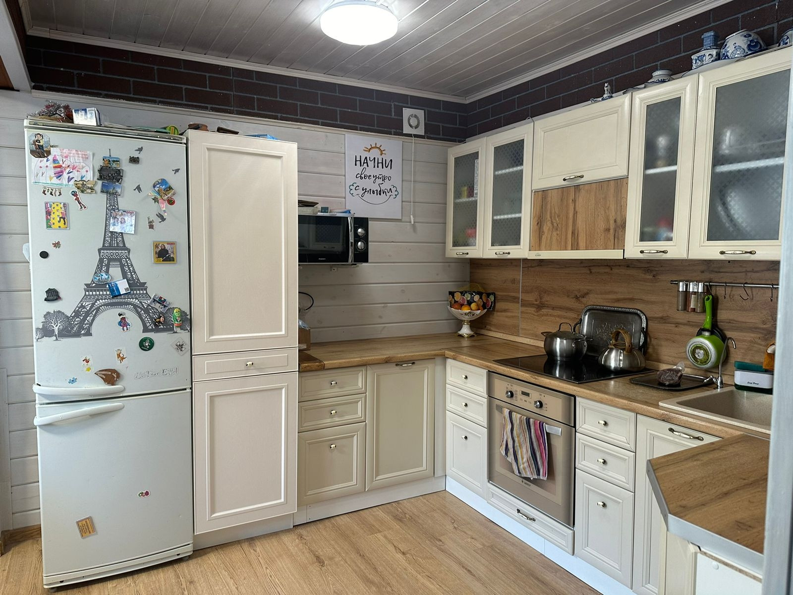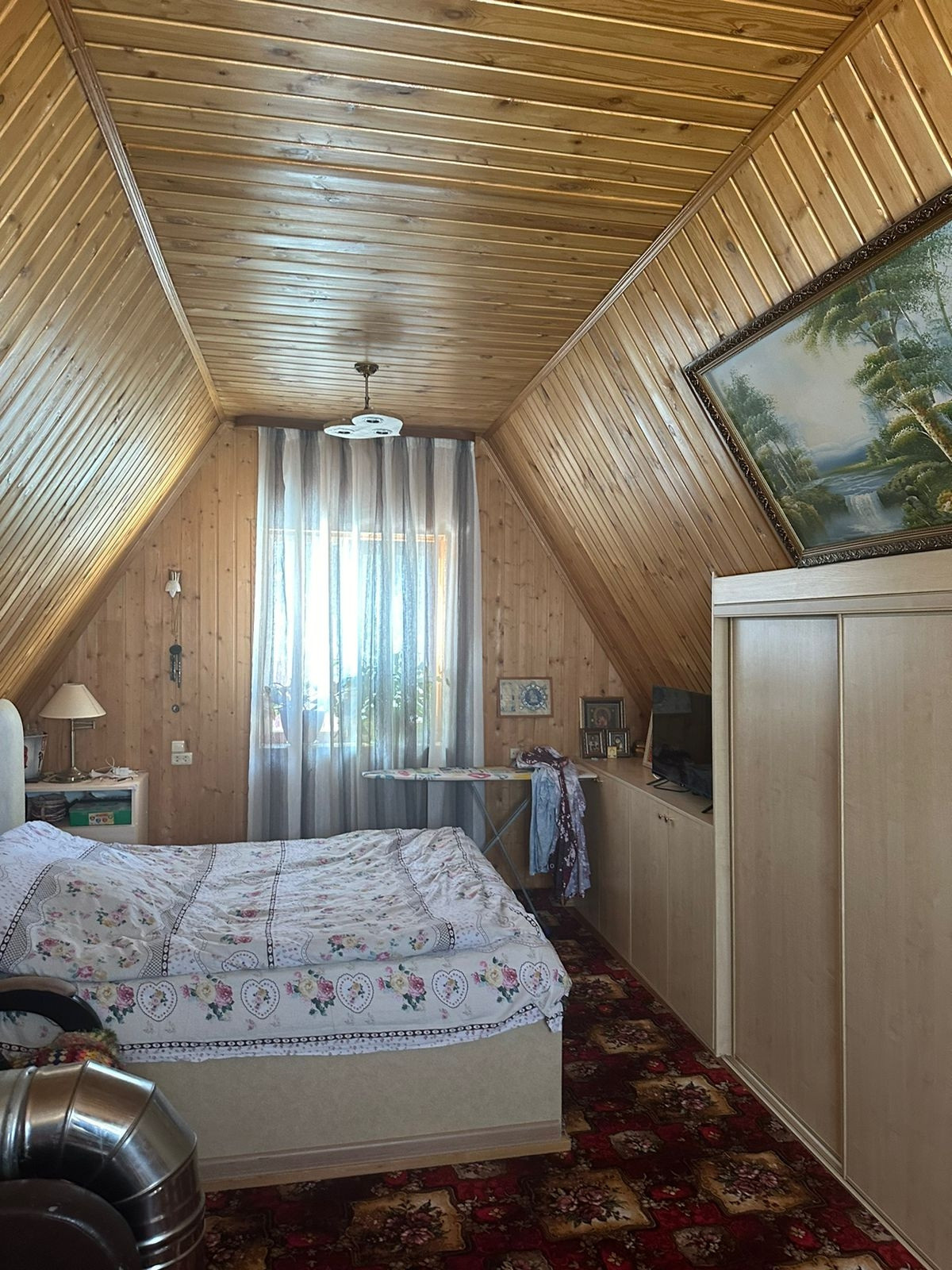 Дом 2-х этажный: 1-й этаж-брус, 2-й этаж (мансарда) каркасно-обшивная с утеплителем, обшит внутри имитацией бруса, снаружи сэндвич-панели.