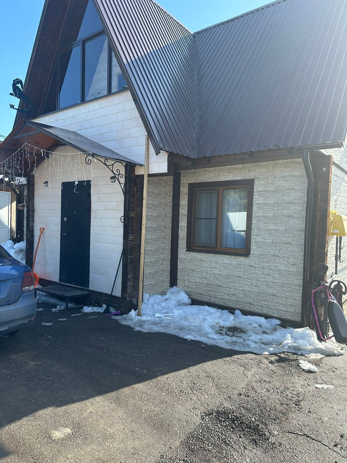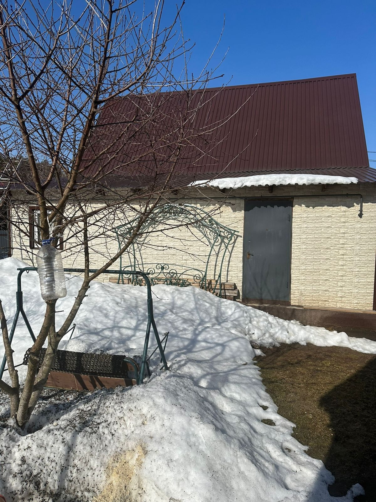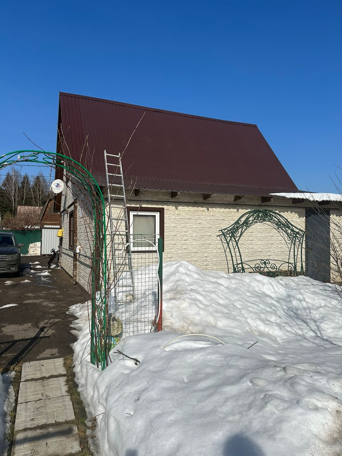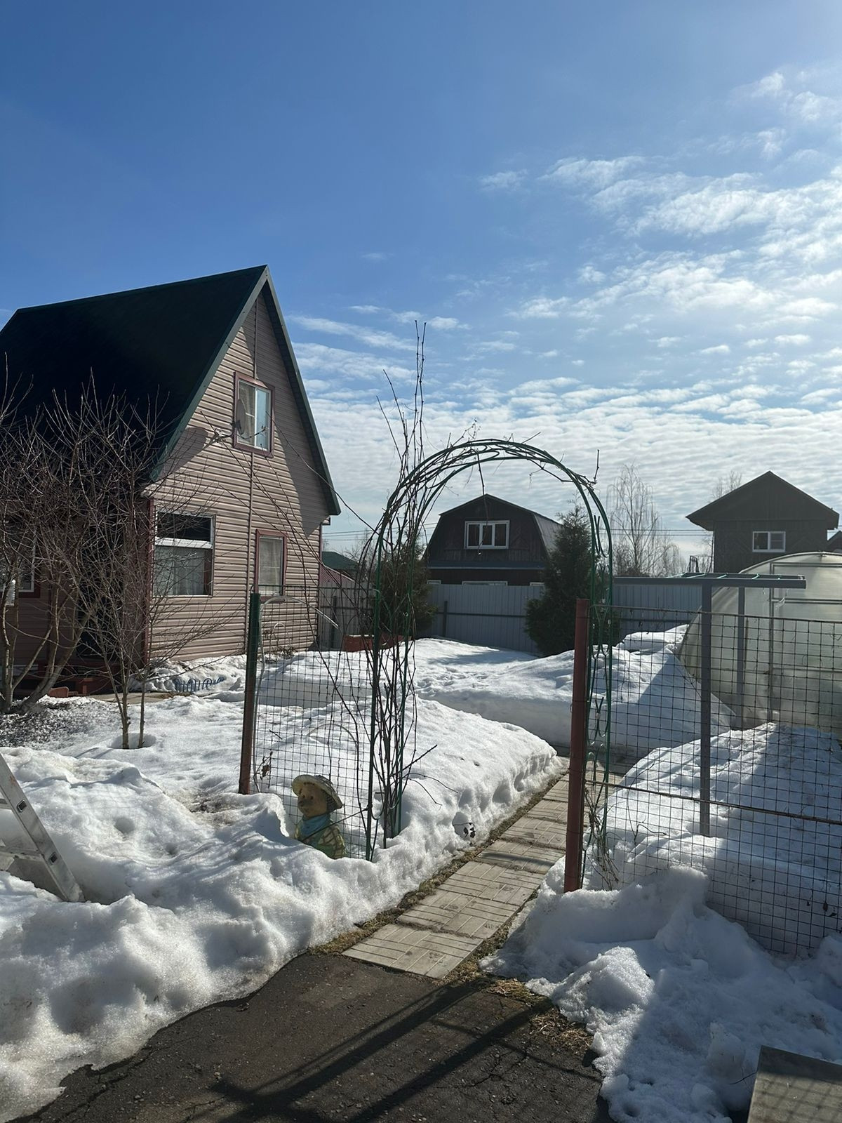 Участок огорожен профлистом, въездные ворота, парковочное место.