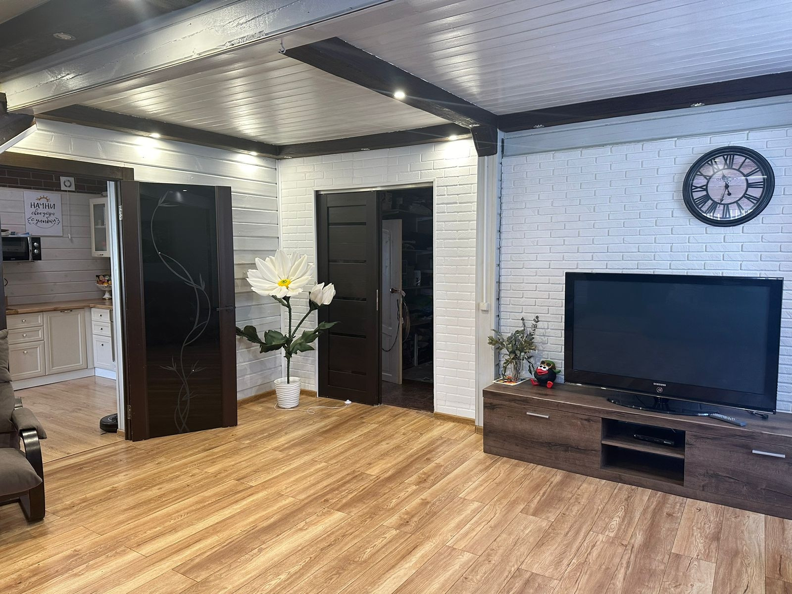 1-й этаж- кухня 16кв.м., гостиная 28 кв.м.,