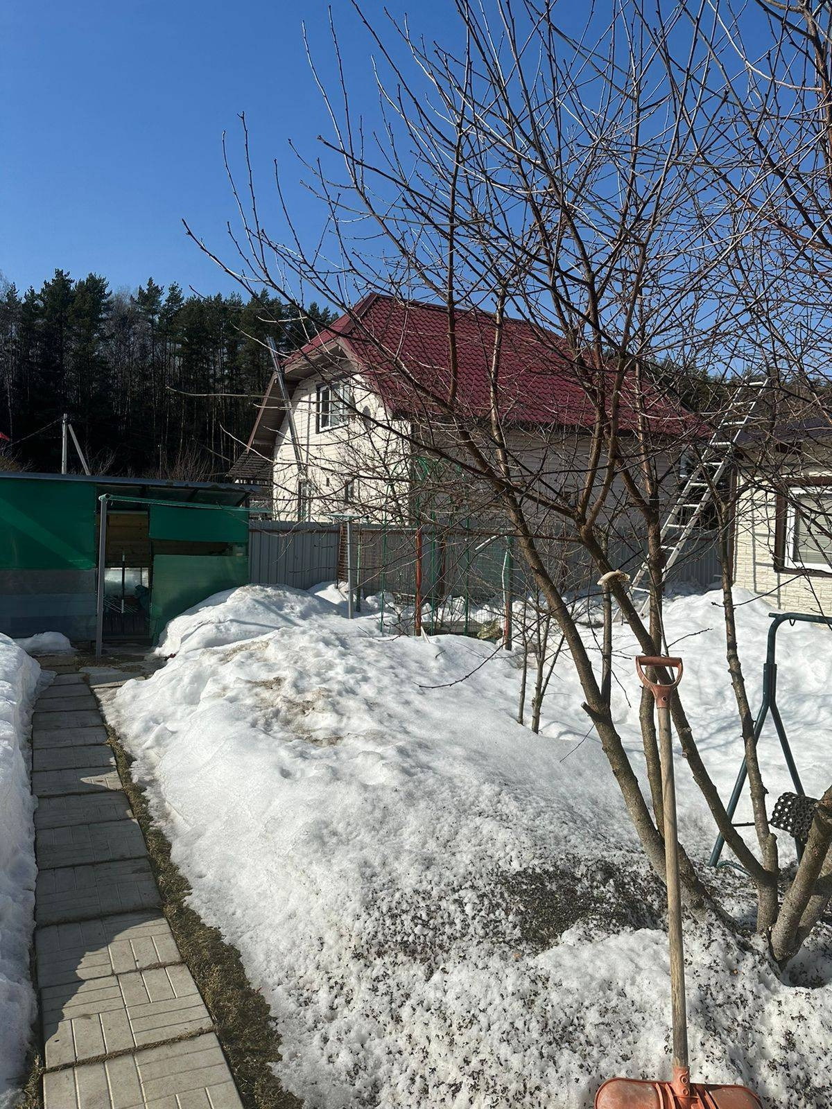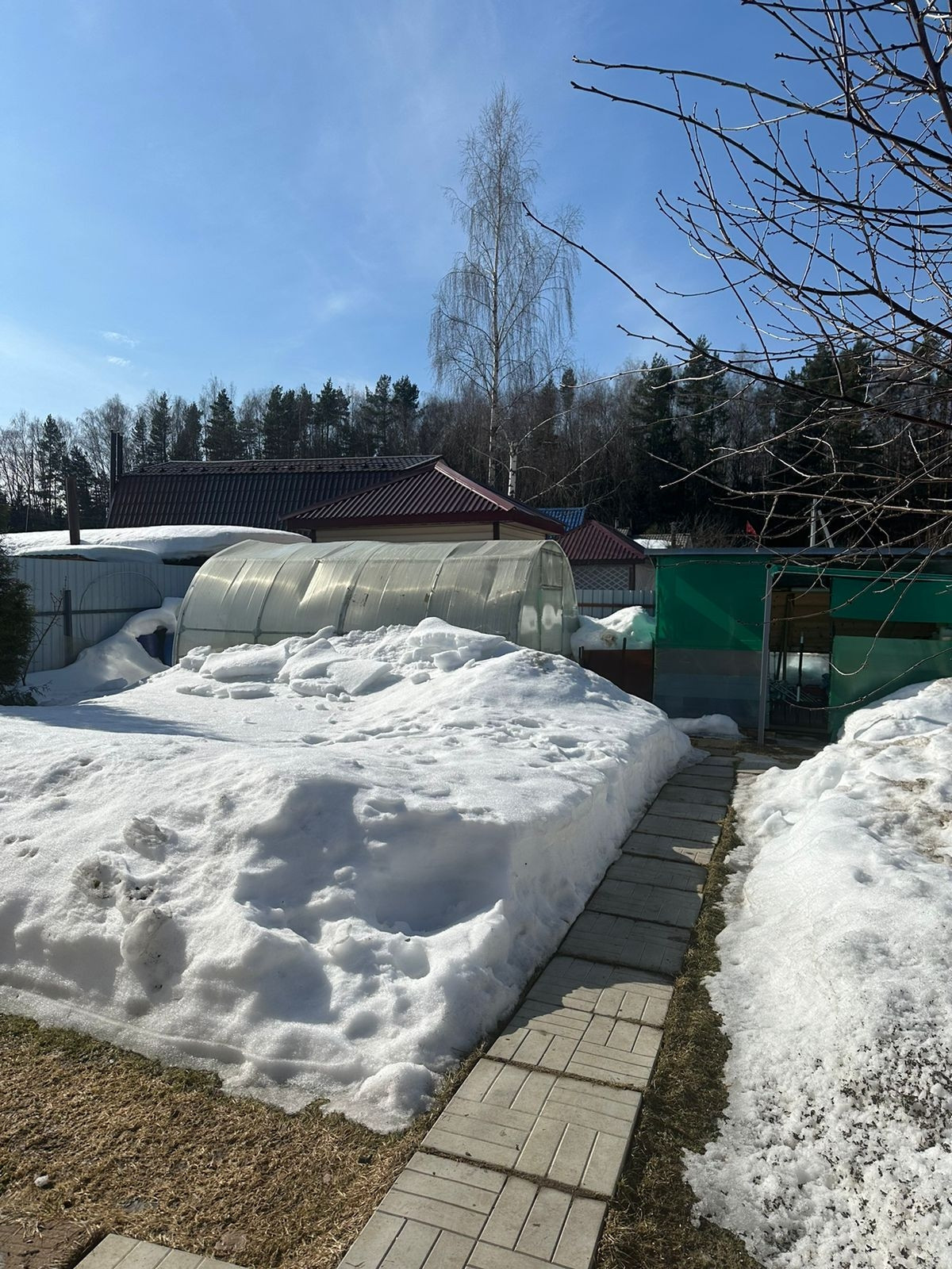 Сделаны дорожки, участок рассажен,теплицатеплица,сарай.