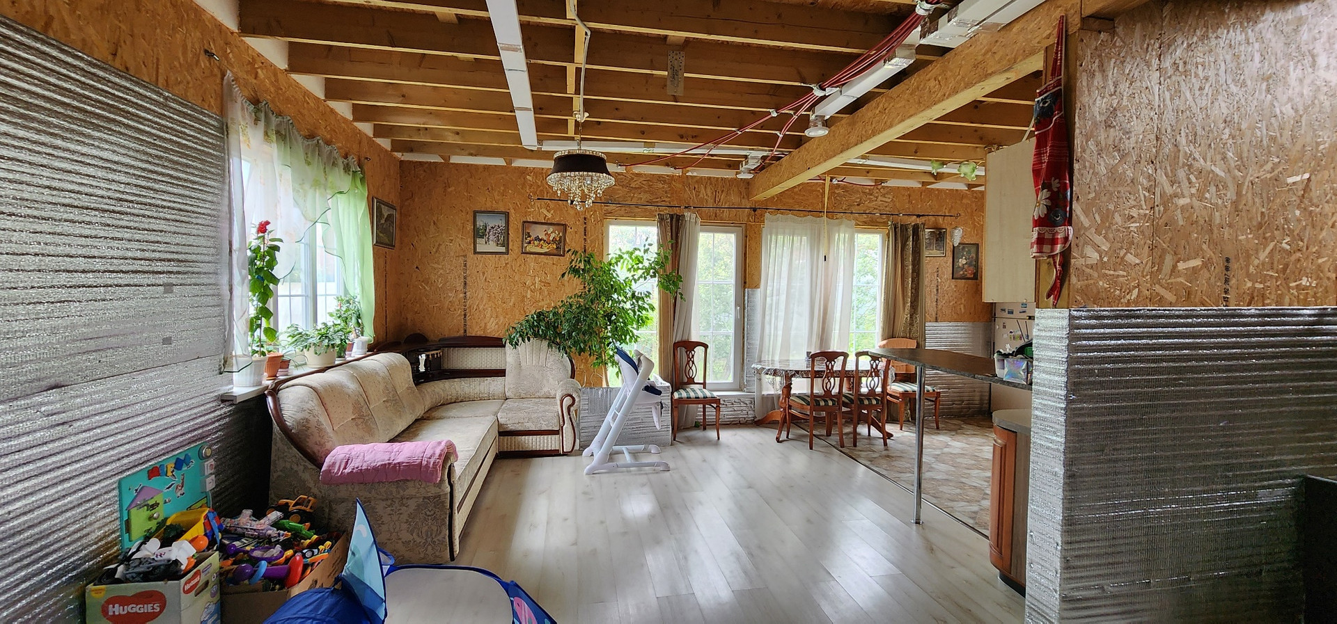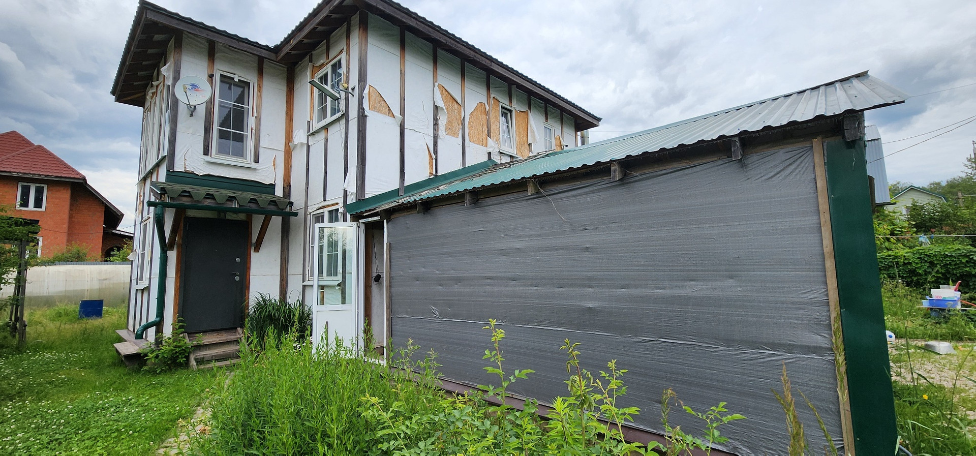 Конструктив: каркас из СИП-панелей, утеплен полностью (требуется обшивка фасада и отделка внутри по вкусу). Фундамент: ленточный, далее заливалась плита под дом и гараж. Дом удобно расположен по отношению к ЖК «Алхимово», крайняя улица со своей калиткой и тропинкой, ведущей ко всей необходимой инфраструктуре (школа, детский сад, магазины, аптеки и др. всё в пешей доступности. Автобусная остановка до МЦД Щербинка-Подольск в 100 метрах от ворот в СНТ.
