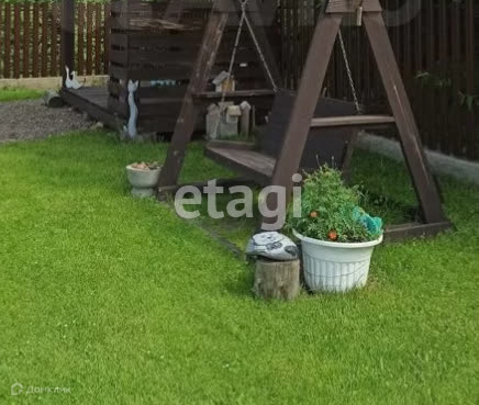 Сам участок ровный и сухой с ухоженным газоном, минимальный огород.