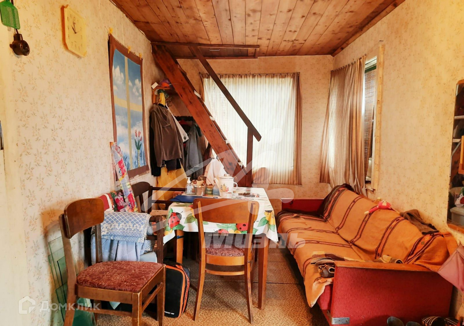 Арт. 42620718 Продается дача - дом 75 кв. м на участке 9 соток. Участок ровный, огорожен металлическим (рабица) забором, есть межевание, категория - земли сельхозназначения, для садоводства. Дом 75 кв. м, 1 этаж + мансарда, свайный фундамент, материал стен деревянные доски, перекрытия деревянные, окна деревянный стеклопакет; наружная отделка - доска; внутренняя отделка – фанера, обои, отопление – печное (дрова). Планировка: 1-й этаж – просторная кухня, 1 комната 20 кв. м, мансардный этаж - 1 комната. Коммуникации - электричество 10 кВт, подключено; центральный летний водопровод (в доме воды нет), газ в СНТ проведен. Подъездная дорога: асфальт до СНТ, асфальтная крошка до участка. Безопасность – охрана, автоматические ворота и общее ограждение, пропускная система. Транспортная доступность: Ленинградское шоссе, М11, 55 км от МКАД, вблизи д. Якиманское. Общественный транспорт – в пешей доступности остановка, на автобусе № 21 ( 20 минут) до ж/д станции Подсолнечная в Солнечногорске. Окружающая местность: на въезде питомник растений «Русроза», Истринское водохранилище в 2 км, лес 1 км. Необходимая инфраструктура: летний продуктовый магазин, до круглосуточного магазина «Якиманский» от дачи пешком 15 минут. Стародачное место, солидное окружение, соседи живут круглогодично.