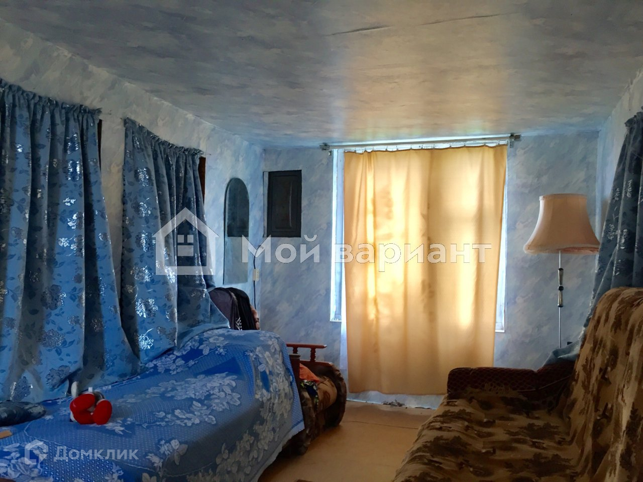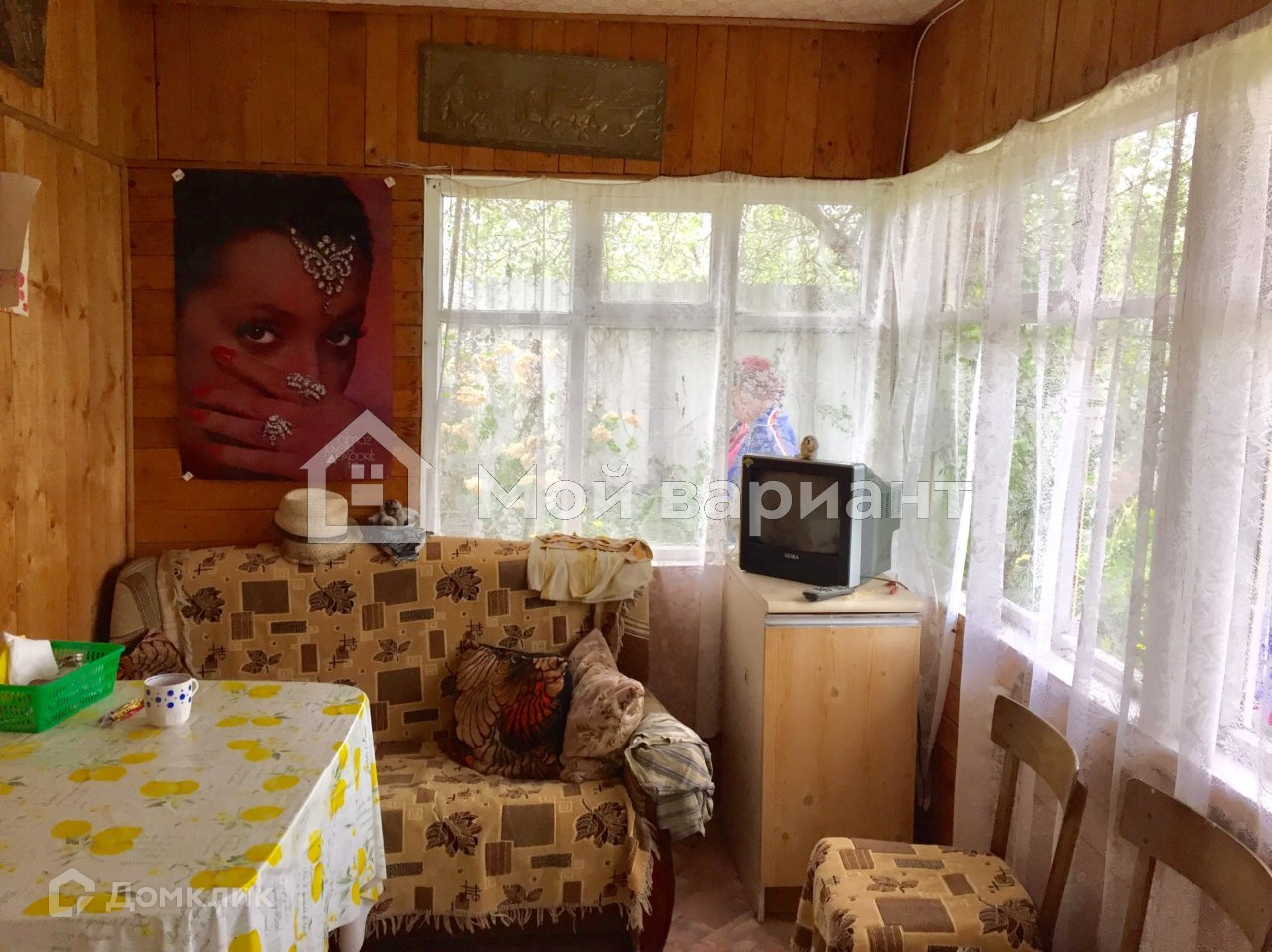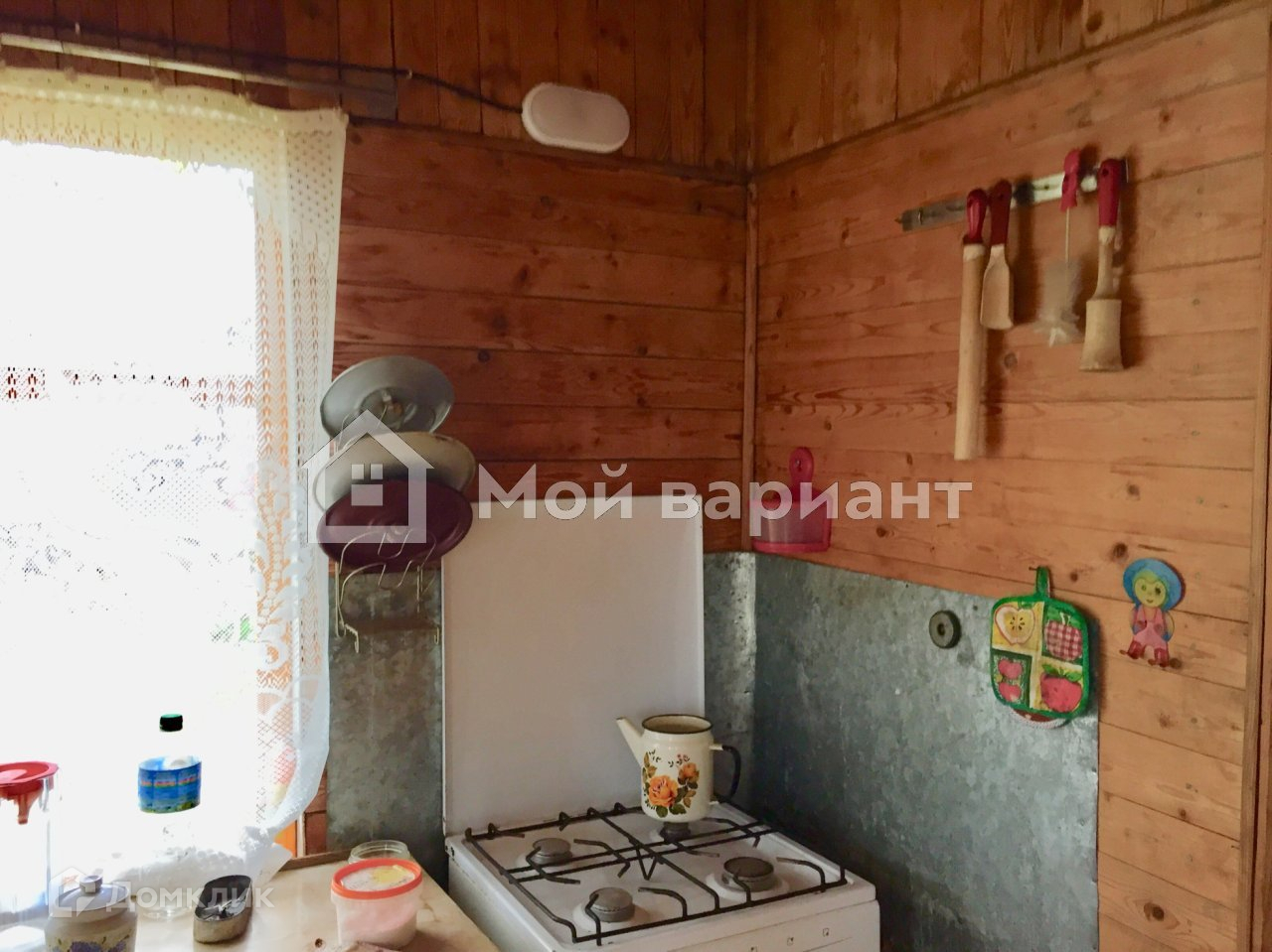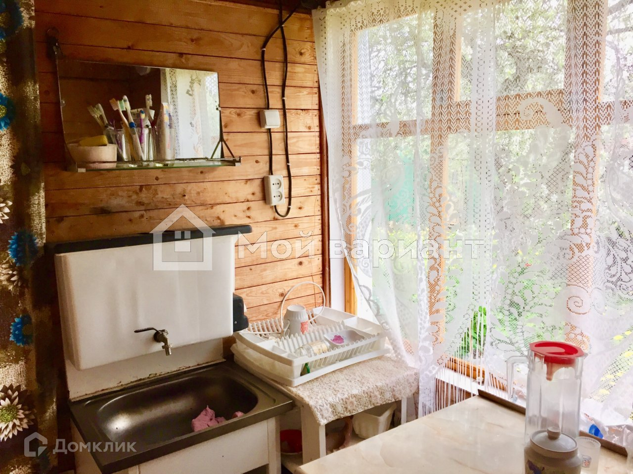 На участке имеется 2х эт. деревянный дом 50 м2, обшитый сайдингом. На 1 этаже: терраса, кухня, 2 комнаты ( одна проходная). На 2 этаже одна большая  комната. Дом пригоден для сезонного проживания.