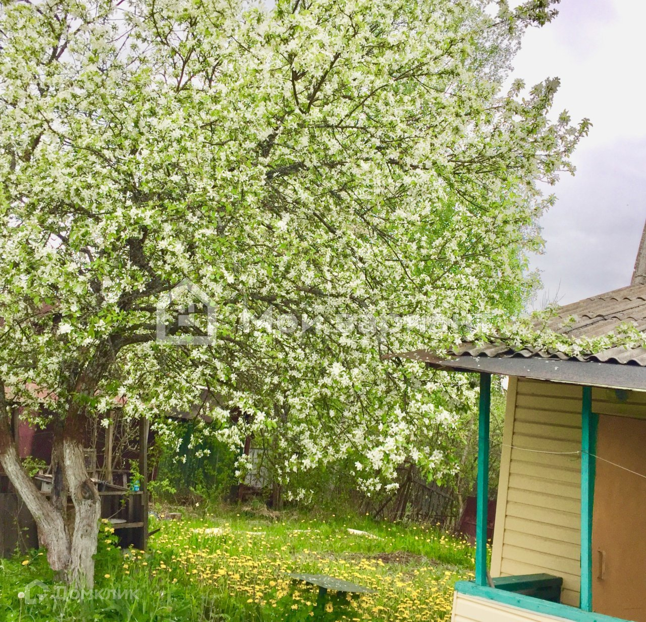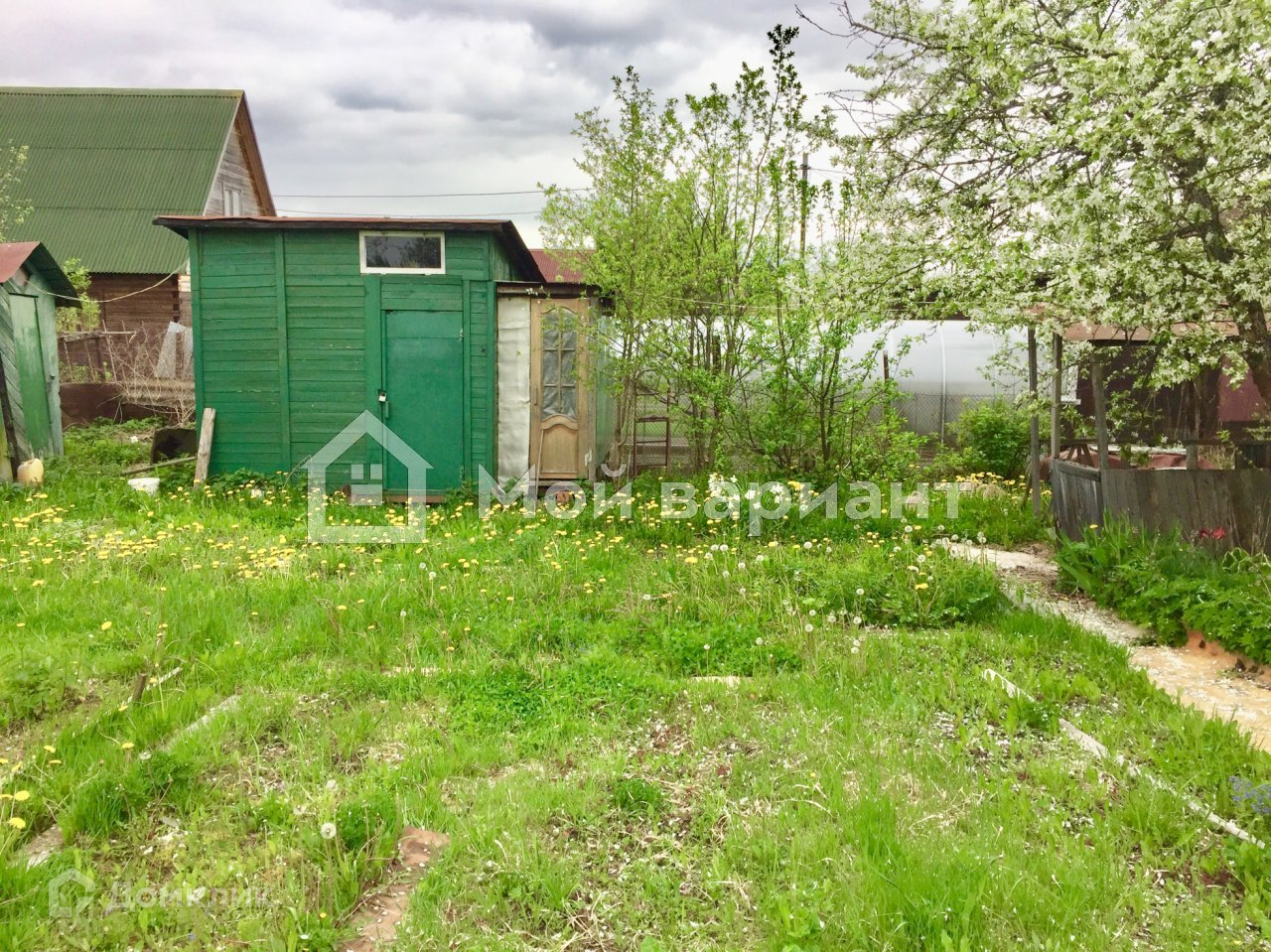 На участке есть хозпостройки, плодовые деревья и кустарники.Забор - металлопрофиль, калитка,ворота.