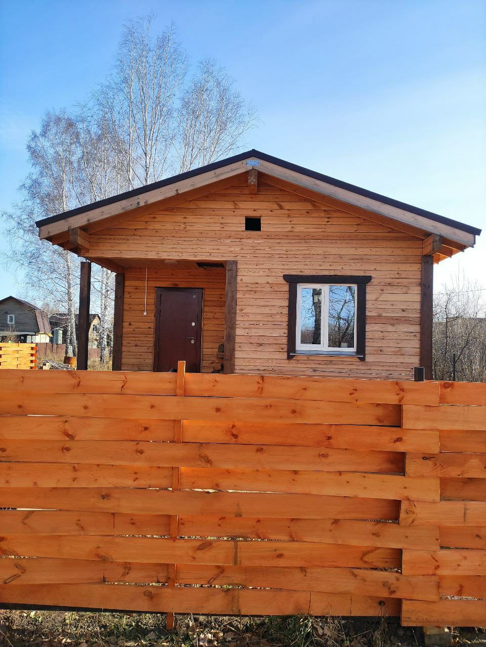 - каркас из профилированного бруса сосны 150х150, обвязка - лиственница 200х200. Все лаги обработаны септиком. Дом дал хорошую усадку за лето, вся геометрия в порядке, щелей, зазоров нет.