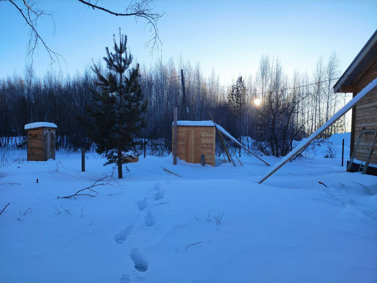 - дровник большой для поленьев, вторая дровница для рубленных дров на крыльце