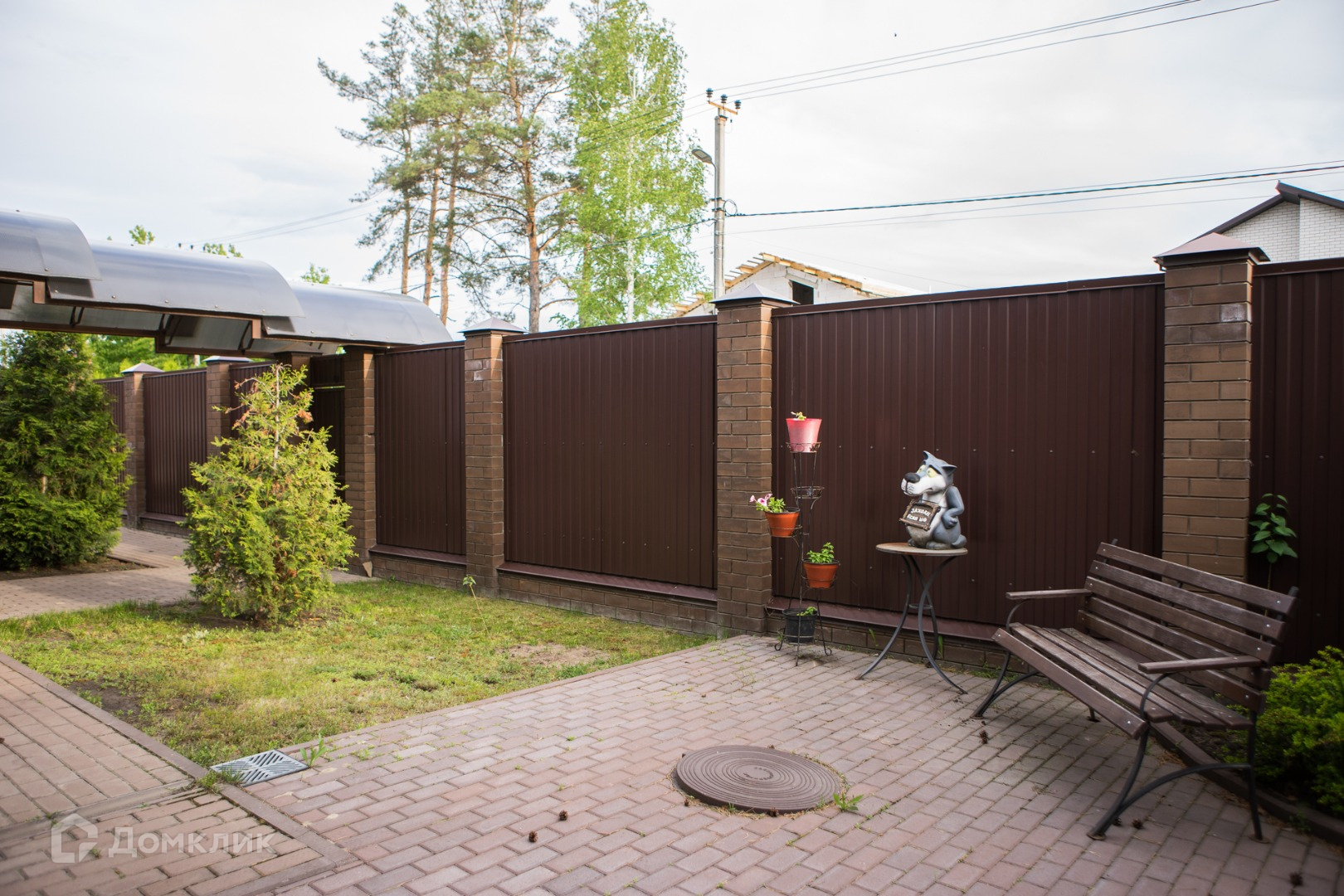 Аккуратная парковка внутри двора без проблем позволит вместить автомобили владельцев и их гостей. Для хранения усадебного или спортивного инвентаря имеется дополнительная кирпичная хозяйственная постройка.