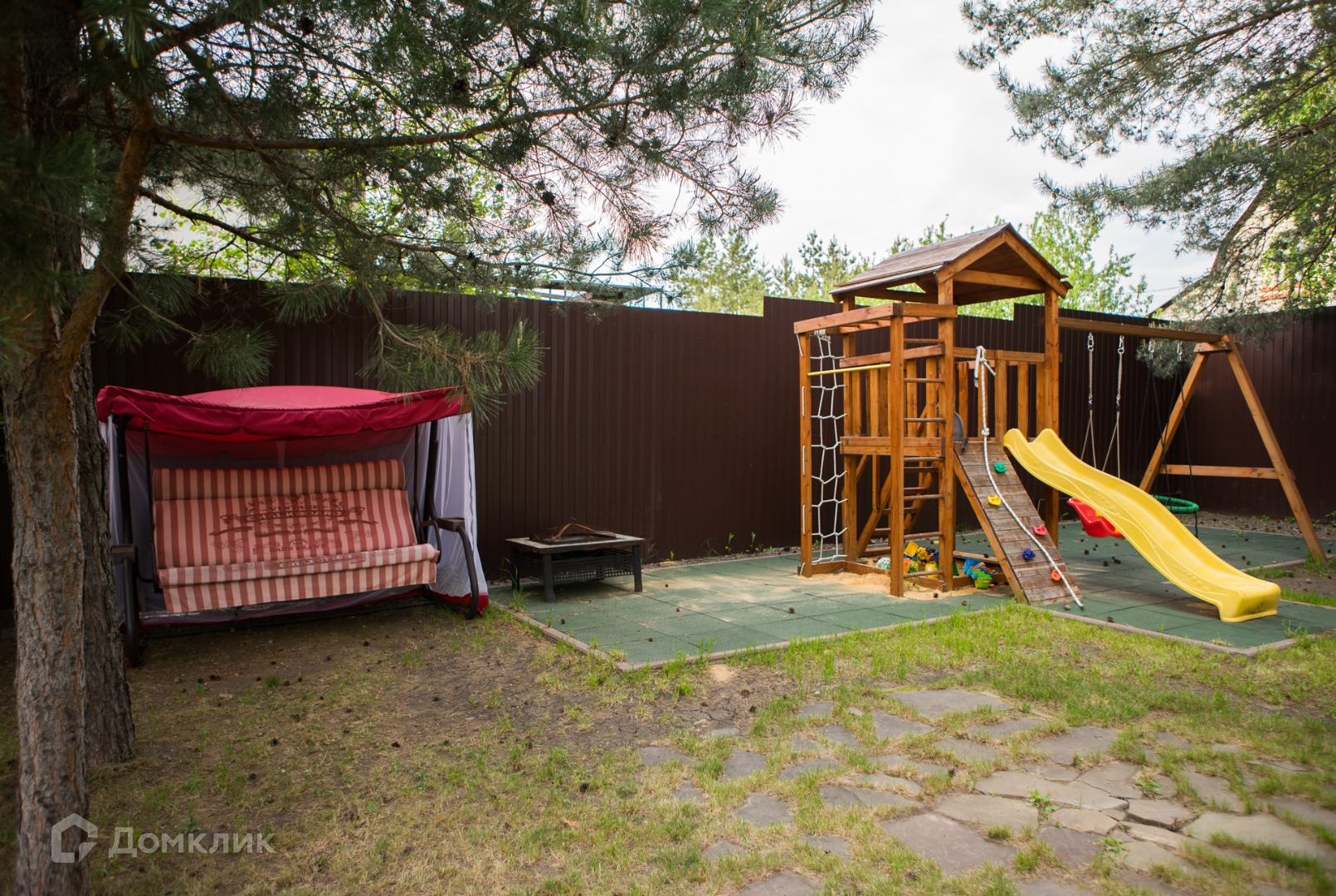 На просторном участке выполнен ландшафтный дизайн с зоной отдыха, детской площадкой и местом для бассейна (залита бетонная площадка, каркасный бассейн в подарок), по всему участку живописно выстраиваются красавицы туи и роскошные сосны, дарящие владельцу визуальное удовлетворение и чистый воздух, а также ощущение свободы и уединения от городской суеты.