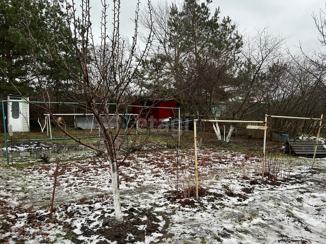 Участок большой, 10 соток, огорожен сеткой рабицей, есть ворота для въезда машины. Участок ухоженный, с садом и виноградником, посажена клубника,много цветов, шикарная ель. Очень плодородная лесная почва.