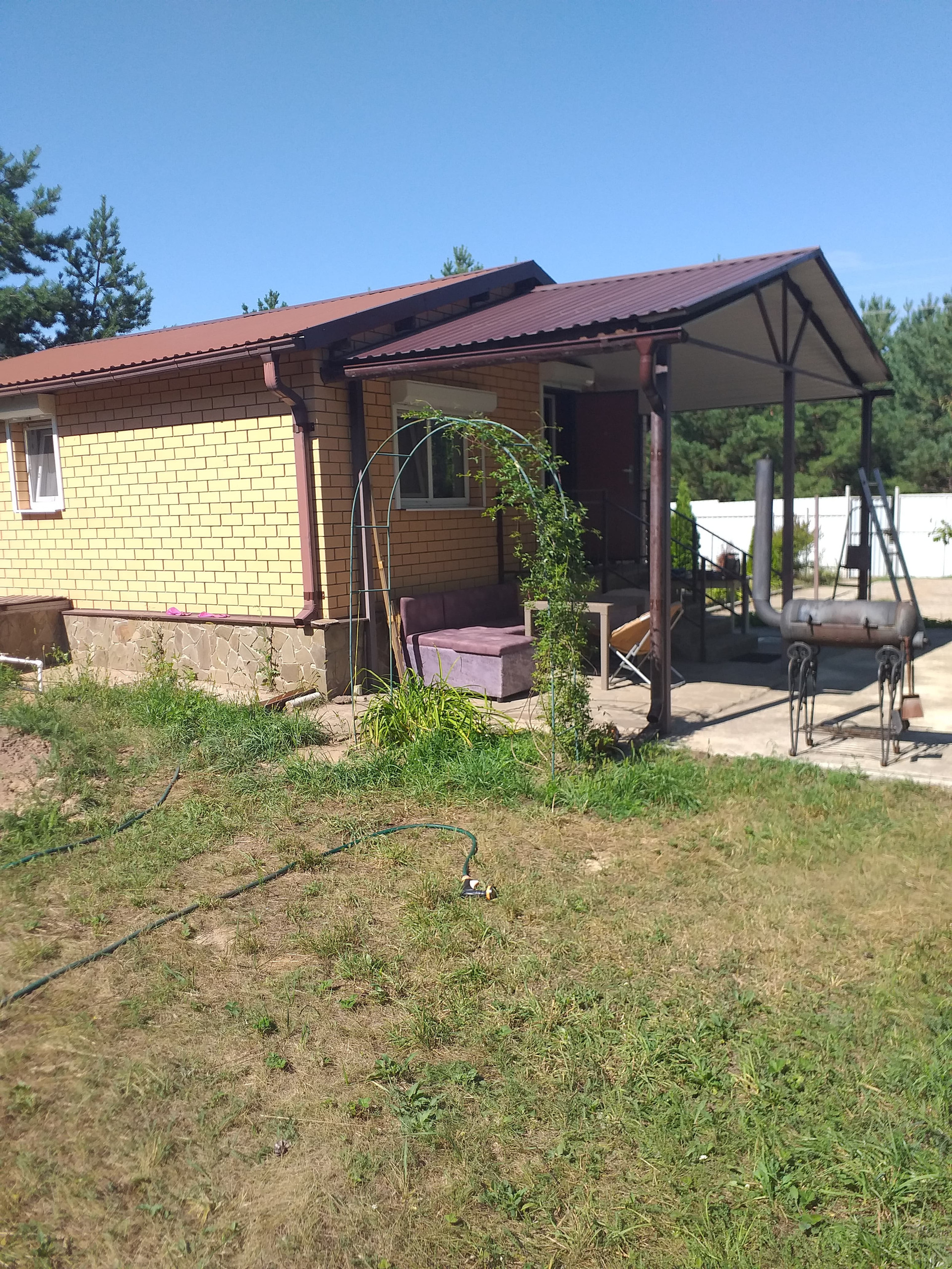 В доме сделан хороший ремонт, окна ПВХ с рольставнями, 2 отдельные спальни, гостиная совмещена с кухней. В санузле душевая кабина, туалет и раковина. Есть водонагреватель и кондиционер. Отапливается электрическим котлом. К дому сделан  навес с зоной для отдыха. Своя скважина с чистейшей водой. Есть место для двух машин.