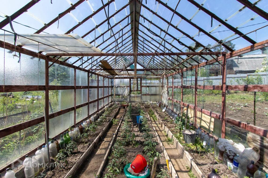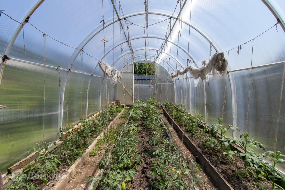 На участке две больших теплицы (стекло, поликарбонат).