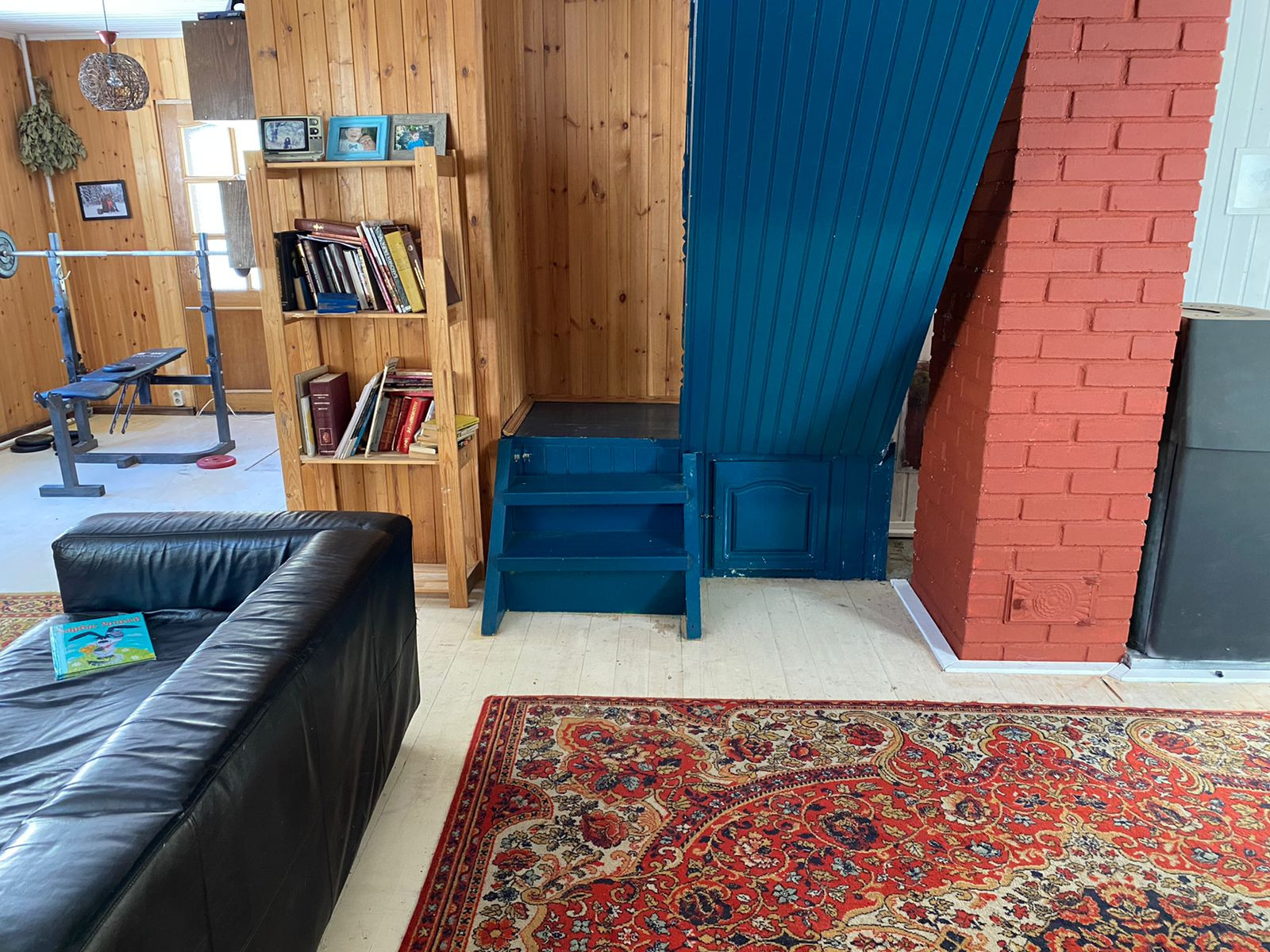 Дом 109,7 кв.м из финского бруса, утеплен, обшит сайдингом. 1 этаж: кухня-гостиная, комната, санузел (с душевой кабиной и туалетом), сауна. 2 этаж: 2 полноценные комнаты и 2 мансардные. Внутри дом обшит вагонкой.