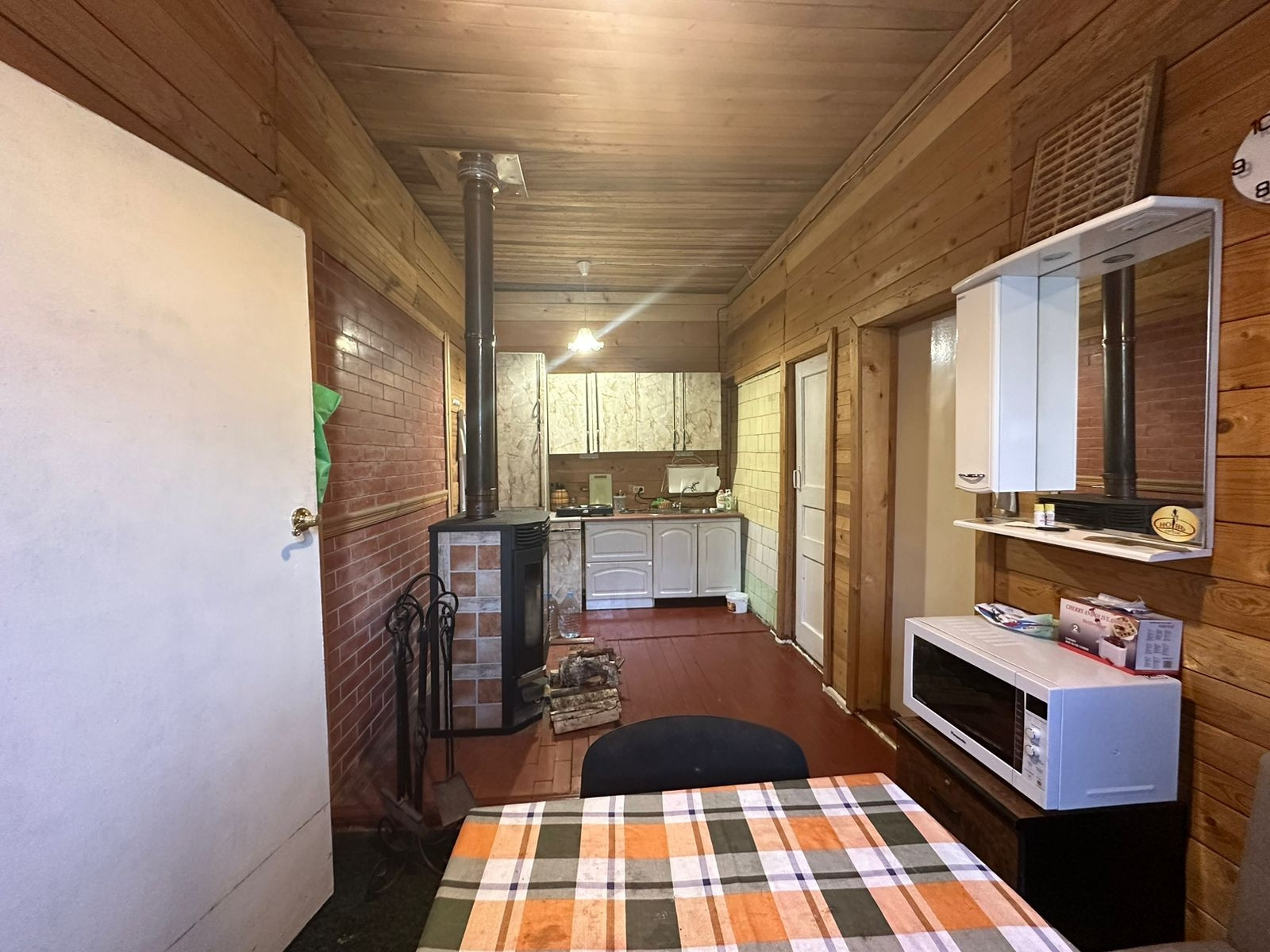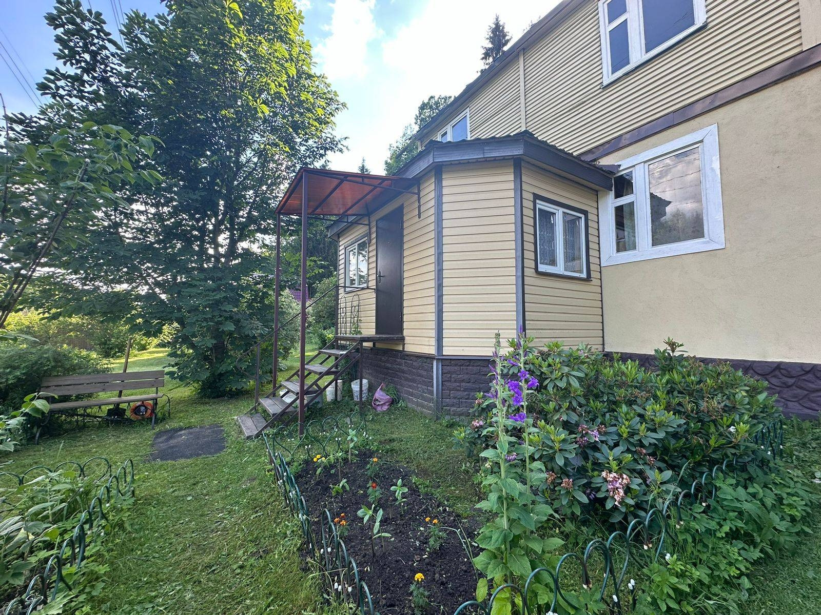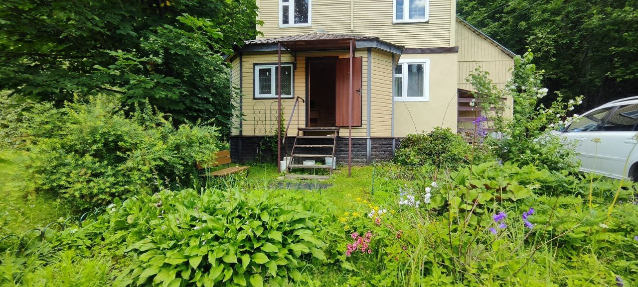 Продается уютный, двухэтажный деревянный дом 78 м.кв., утеплен первый этаж,  на земельном участке 6 соток (по факту 11) правильной формы, с выходом в лес. Земли с/х назначения, для садоводства. Дом  не зарегистрирован.Дом полностью готов к проживанию. На 1м этаже: просторная закрытая веранда, кухня, две комнаты, на втором этаже две просторные комнаты.  Коммуникации: Электричество  6 кВт, разведено; Вода - скважина; туалет на улице. На участке: плодово-ягодные кустарники; фруктовые деревья; декоративные растения. Собственный выход в лес.
