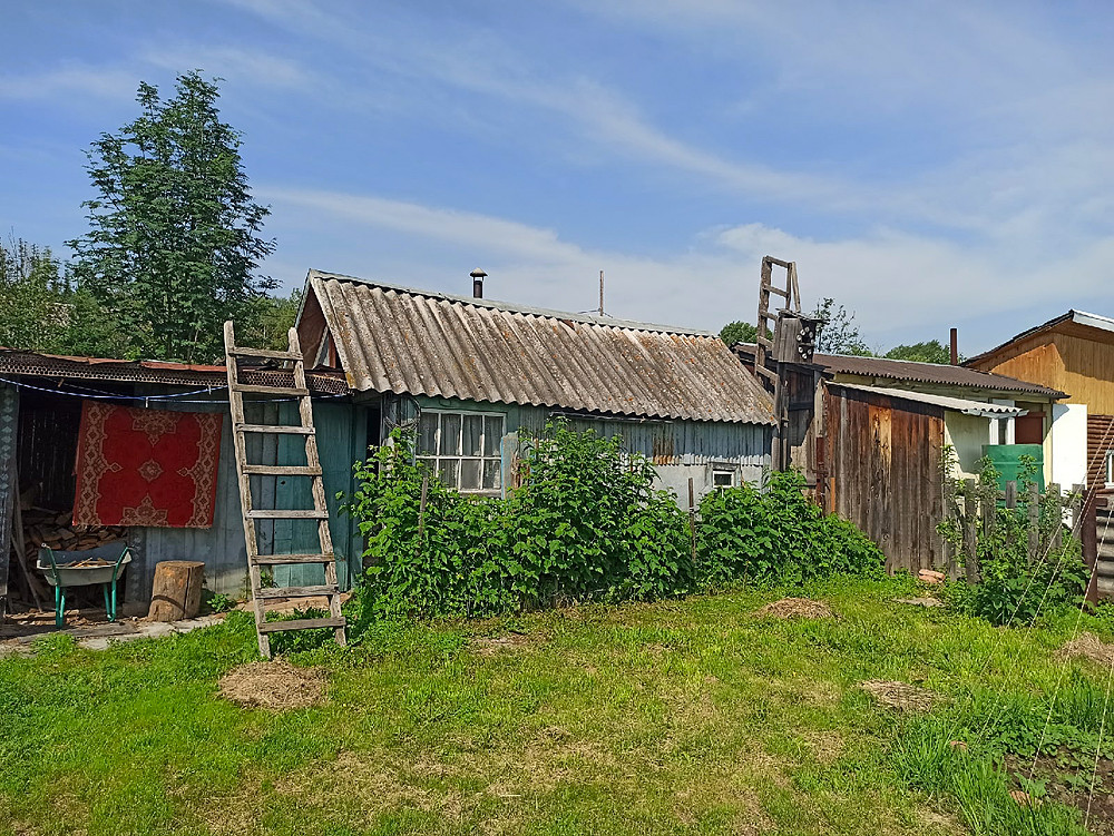 Ухоженный огород с посадками (урожай остается новым хозяевам) много плодоносящих деревьев и кустарников: яблоня, жимолость, малина, крыжовник.