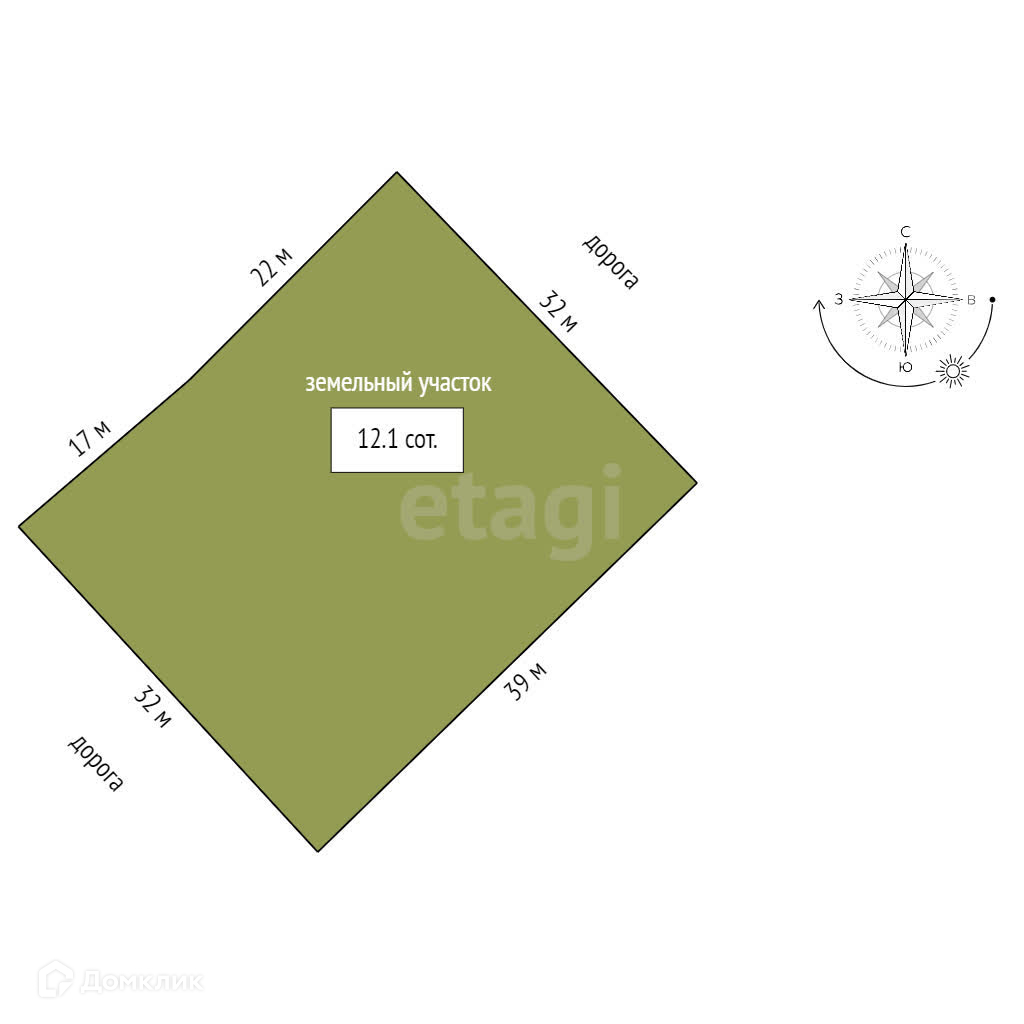 Площадь участка 12.1 сот.