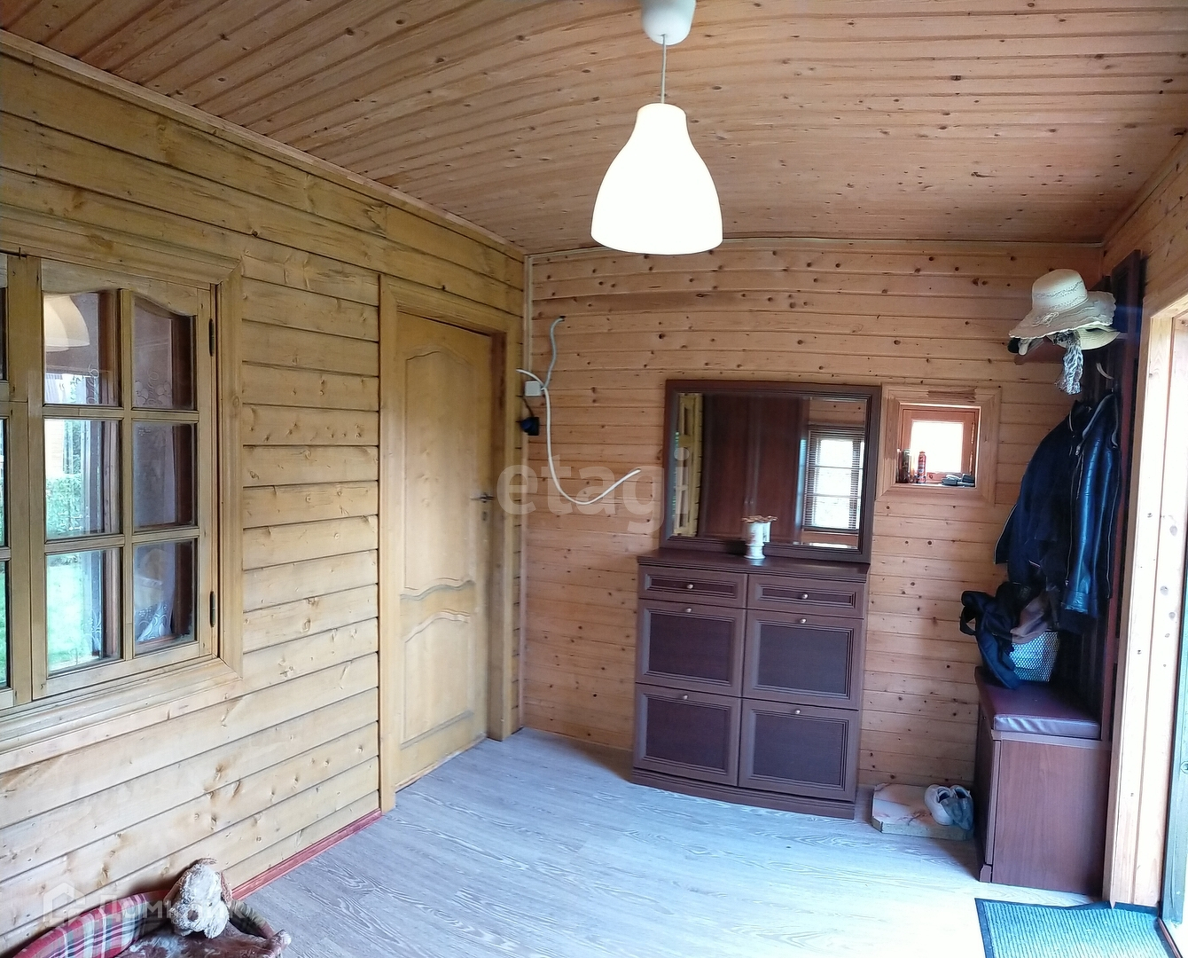 Общая площадь двухэтажного дома 105 кв.м. Дом бревенчатый с утеплением, внутри и частично снаружи обшит вагонкой. Фундамент ленточный, глубиной 2 метра, ливневые стоки, громоотвод. На первом этаже располагаются две спальни, гостиная, кухня, душевая с санузлом и теплыми полами, а также просторная прихожая, которая является предбанником, на втором этаже две комнаты плюс просторный чердак. При продаже вся мебель и техника остается. Заезжай и живи!