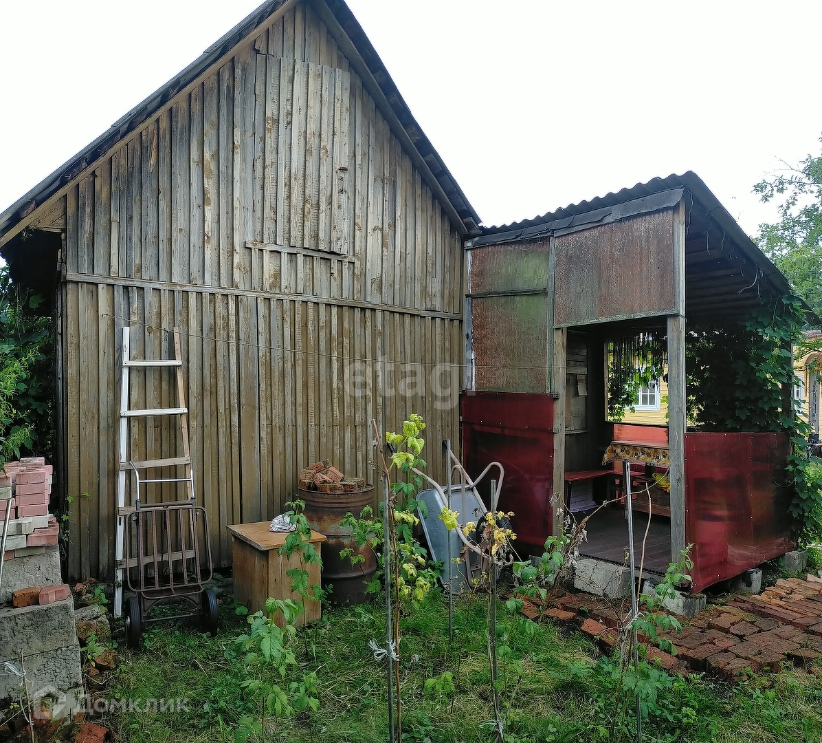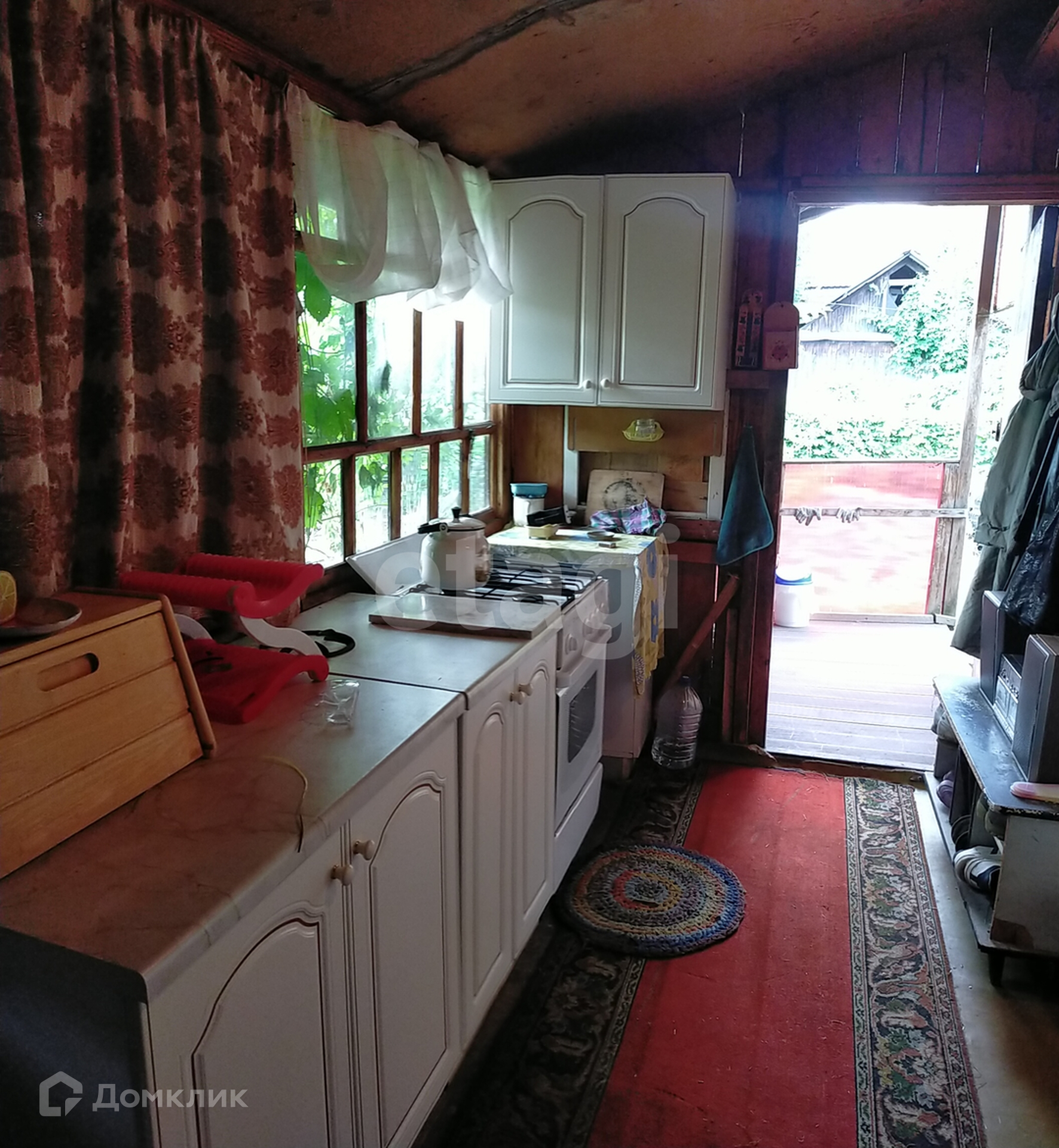 На участке 6 соток располагаются два дома. Основной дом для проживания, второй используется как летняя кухня, на которой есть кухонный гарнитур и газовая плита.