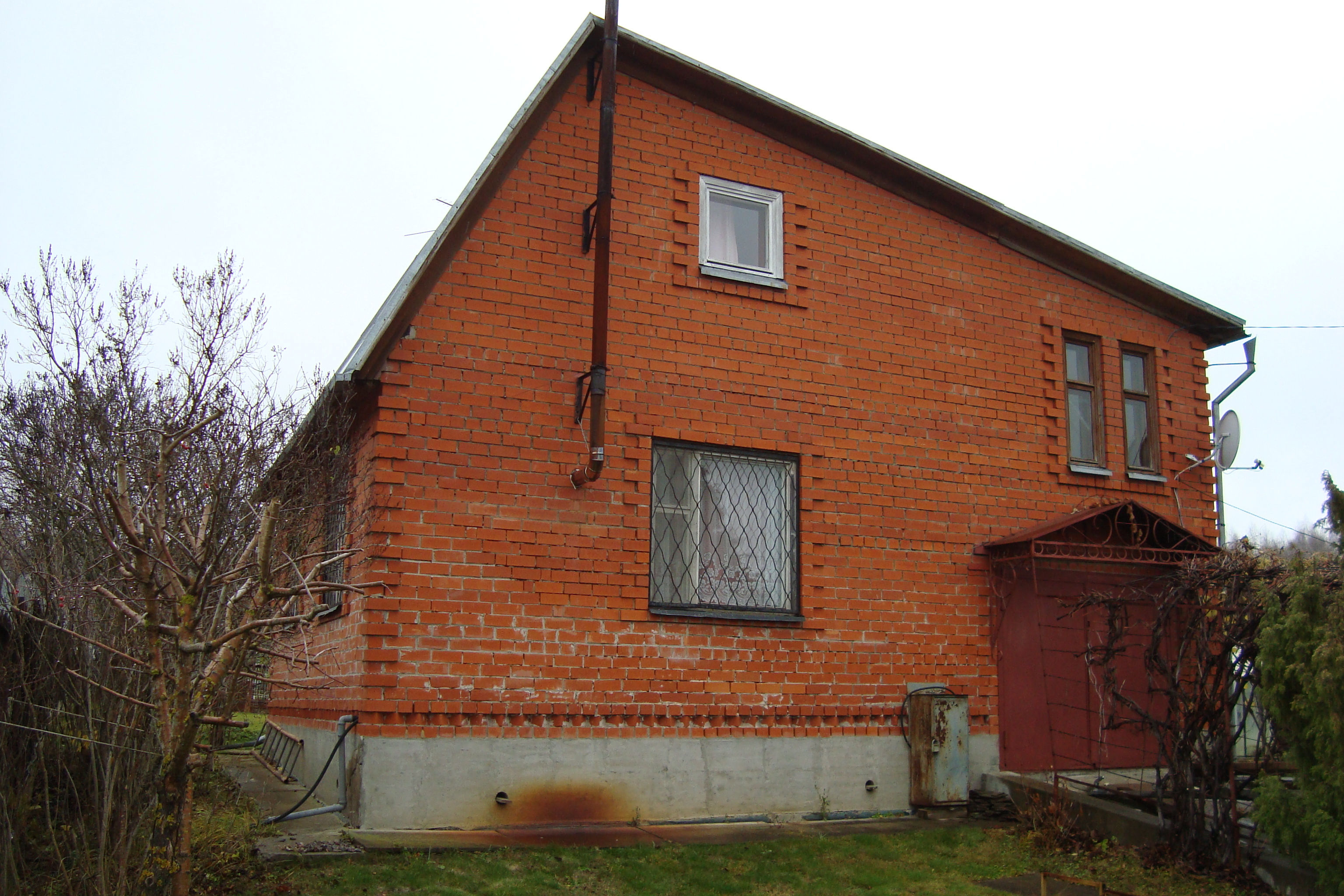 - Дом, 40:7:182601:254, капитальный, кирпичный, 2 этажа, 94 кв. м. (1 эт. - 25,5 кв. м. гостиная-кухня, гараж - 19,1 кв. м. (6,3*7,3 кв.м.), 2 эт. - 3 спальни (10,3/18,4/9,8 кв.м.)), отопление печное, теплый, сухой круглый год, готовим на газ. плите (баллонный газ), телевидение - спутниковая тарелка, в доме вода техническая, питьевая в колонке через 2 дома (скважина более 100 метров), строился для себя и на совесть, на века)));