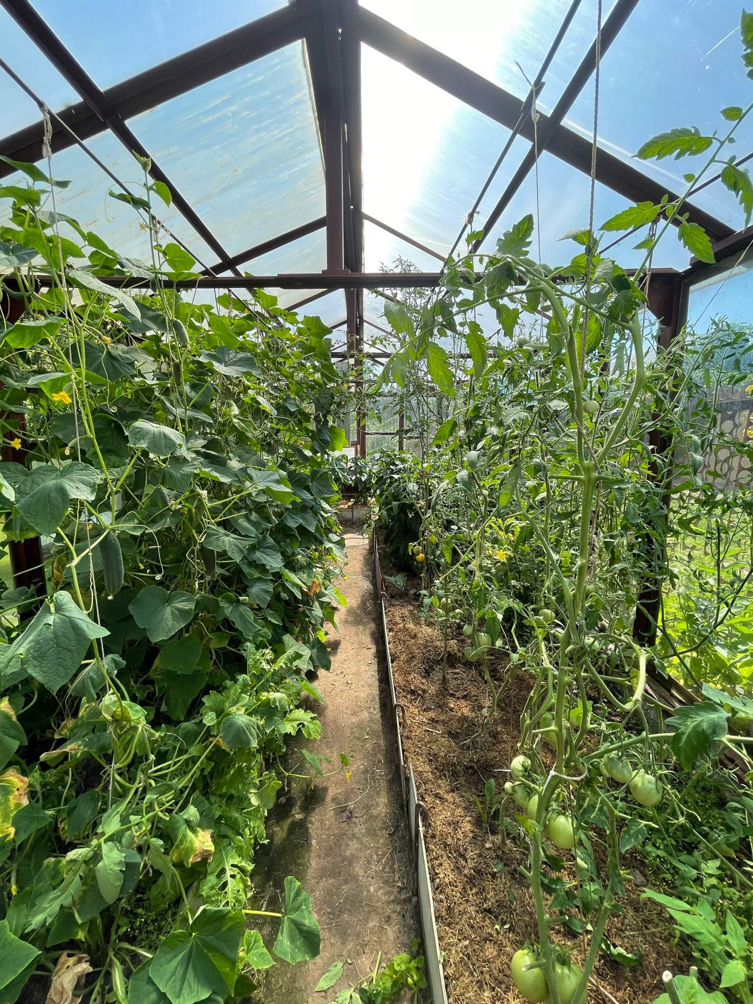 Теплица - 11 метров. 5 грядок. Всегда очень большой урожай всего :)