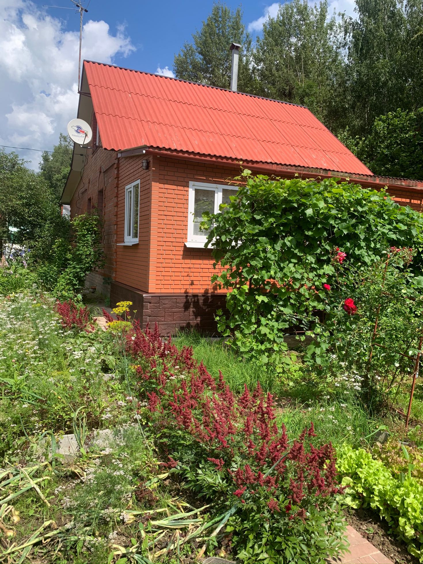 На участке много плодовых деревьев: яблоня, вишня, груша, облепиха. Есть малина, черная/красная смородина, крыжовник. Виноград Изабелла и Кишмиш.