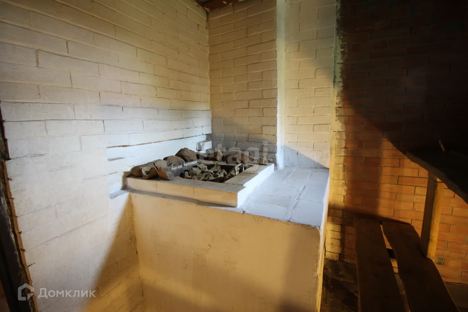 Массивная печь на дровах, которая набрав тепло создает комфортную среду в парилке, а так же обогревает весь дом где стоит.