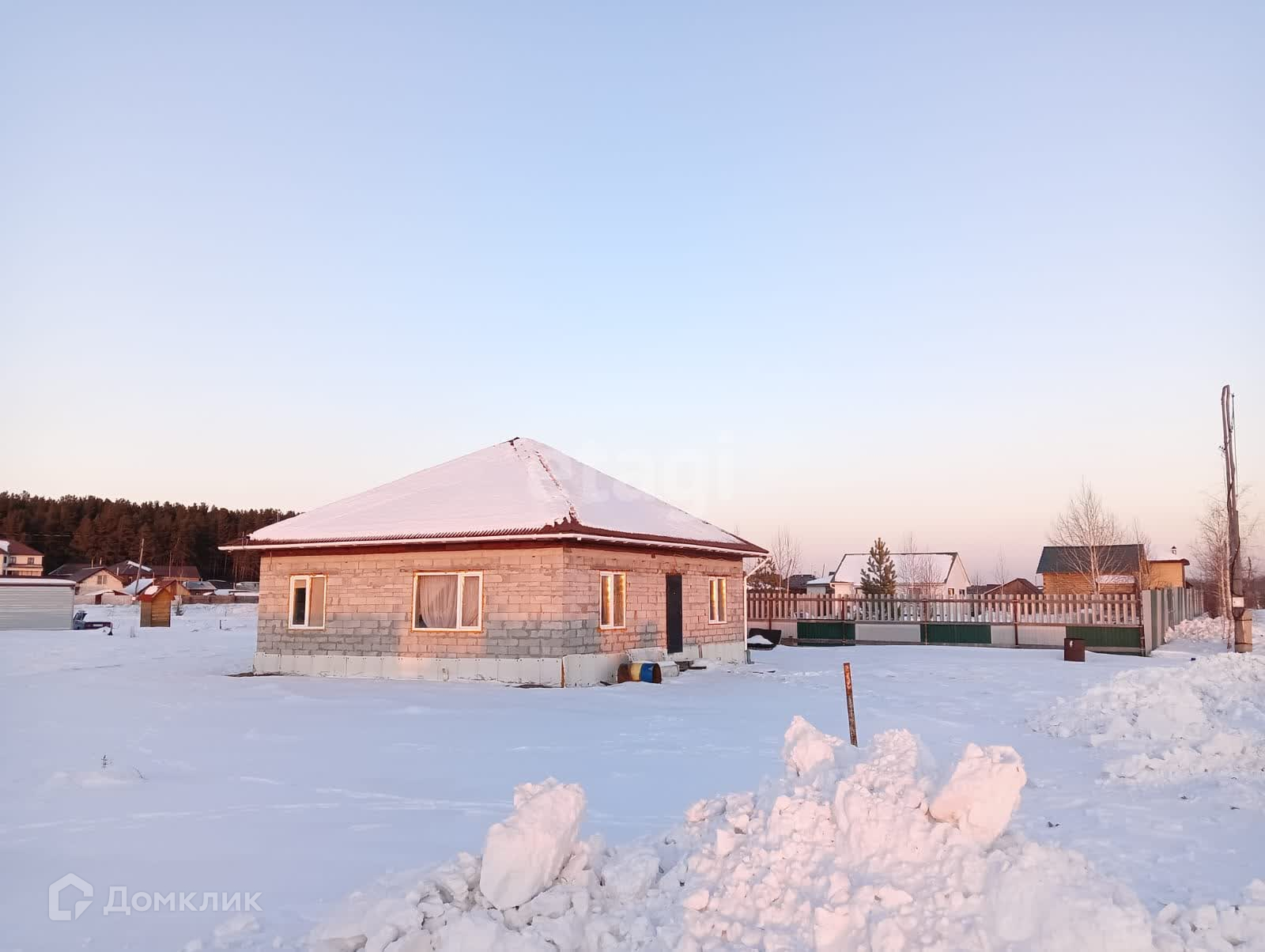 Дом 2013 года, построен из пеноблоков, фундамент - подушка. Внутренней отделки, воды и отопления нет. Окна ПВХ.