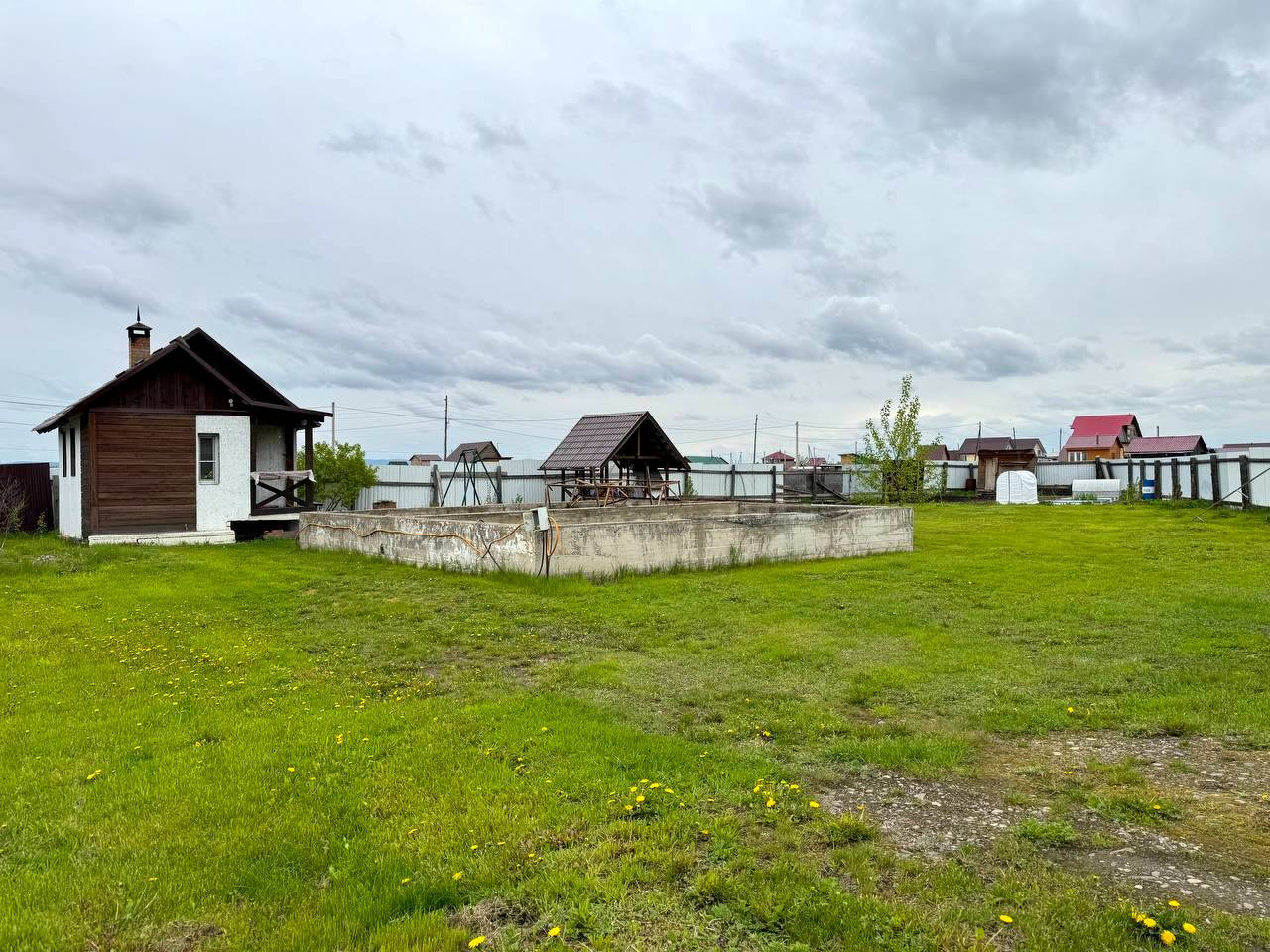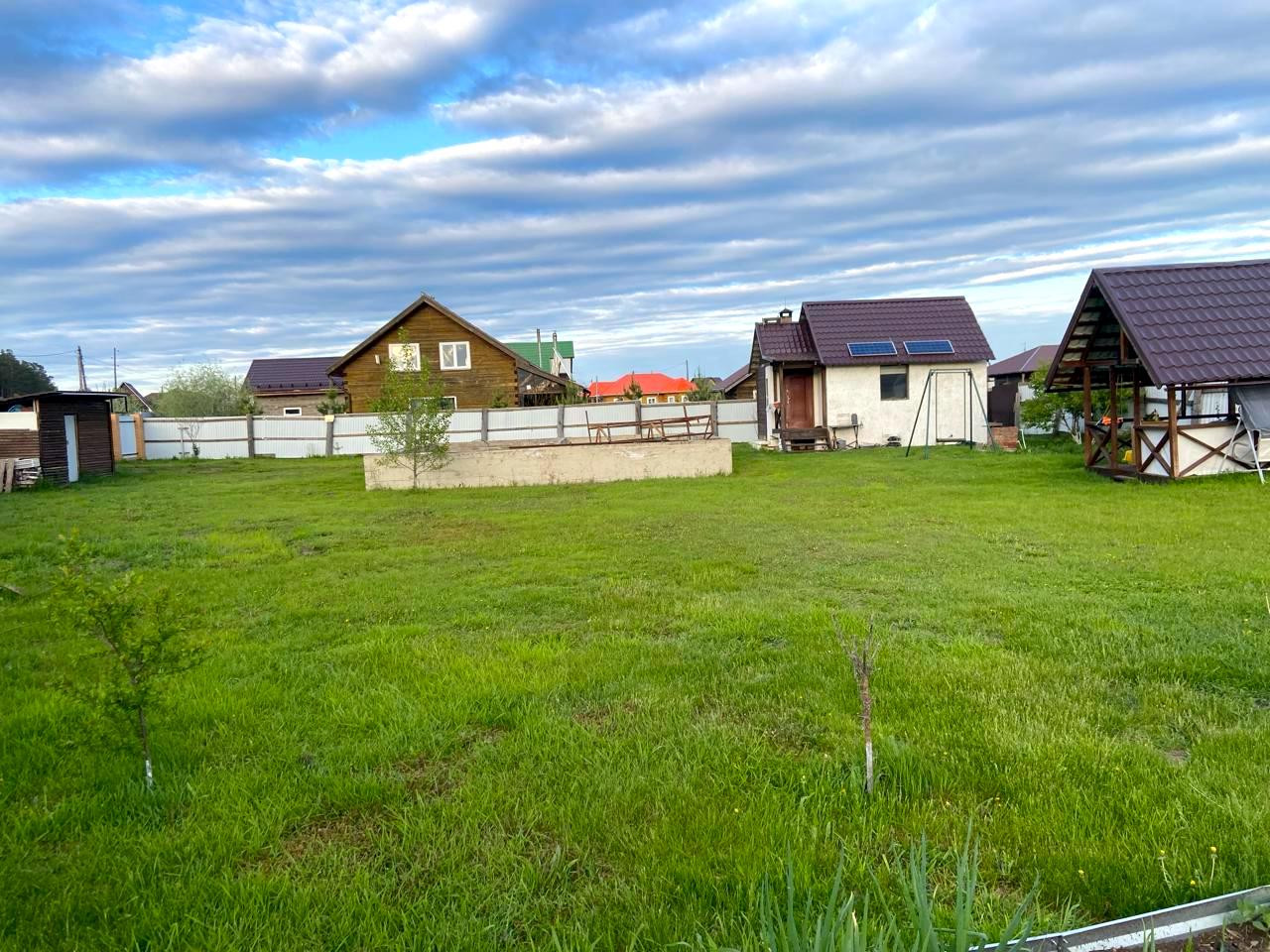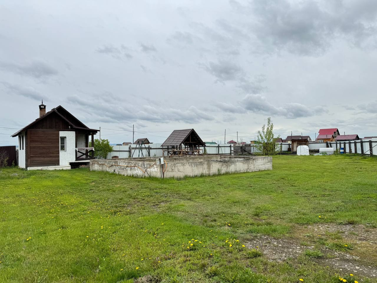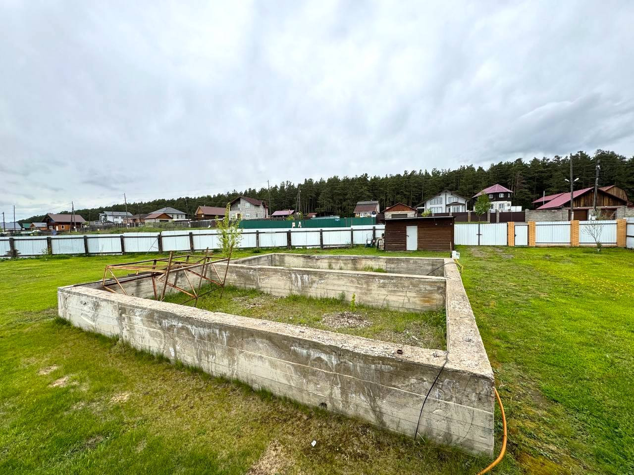 На участке есть беседка, уличный туалет, хоз. Постройка с фундаментом, а также залит ленточный фундамент под дом 9х9.