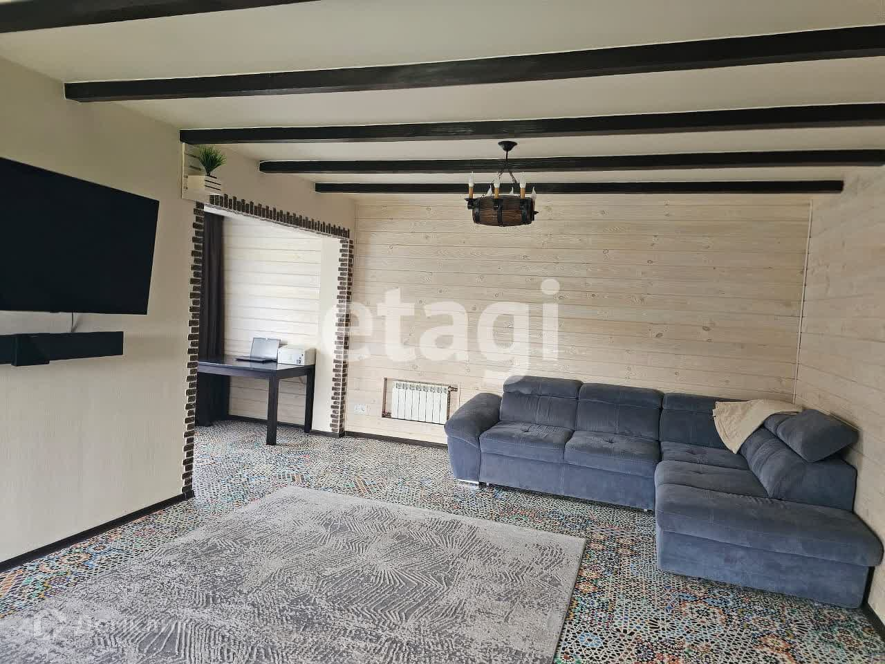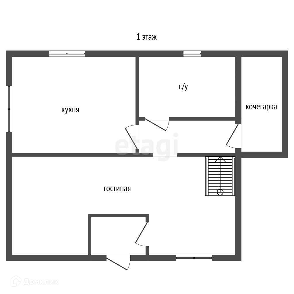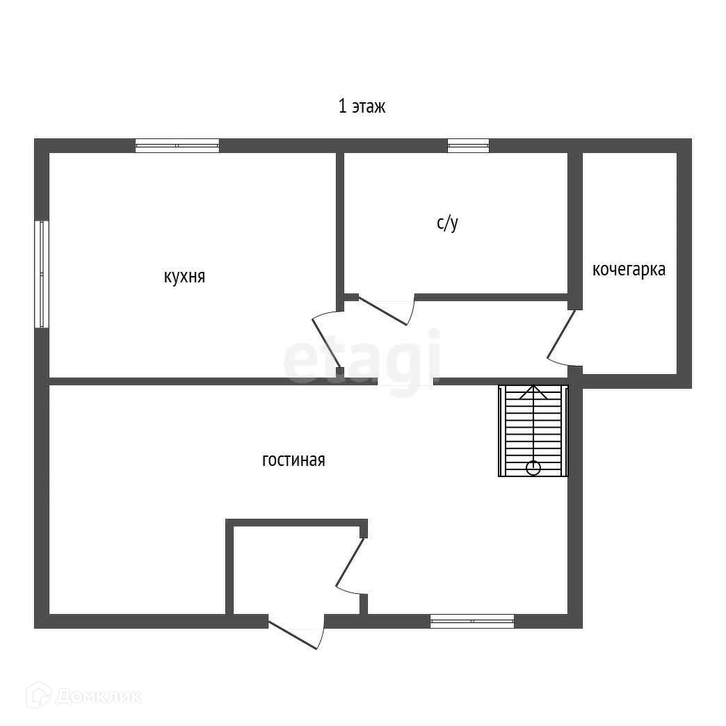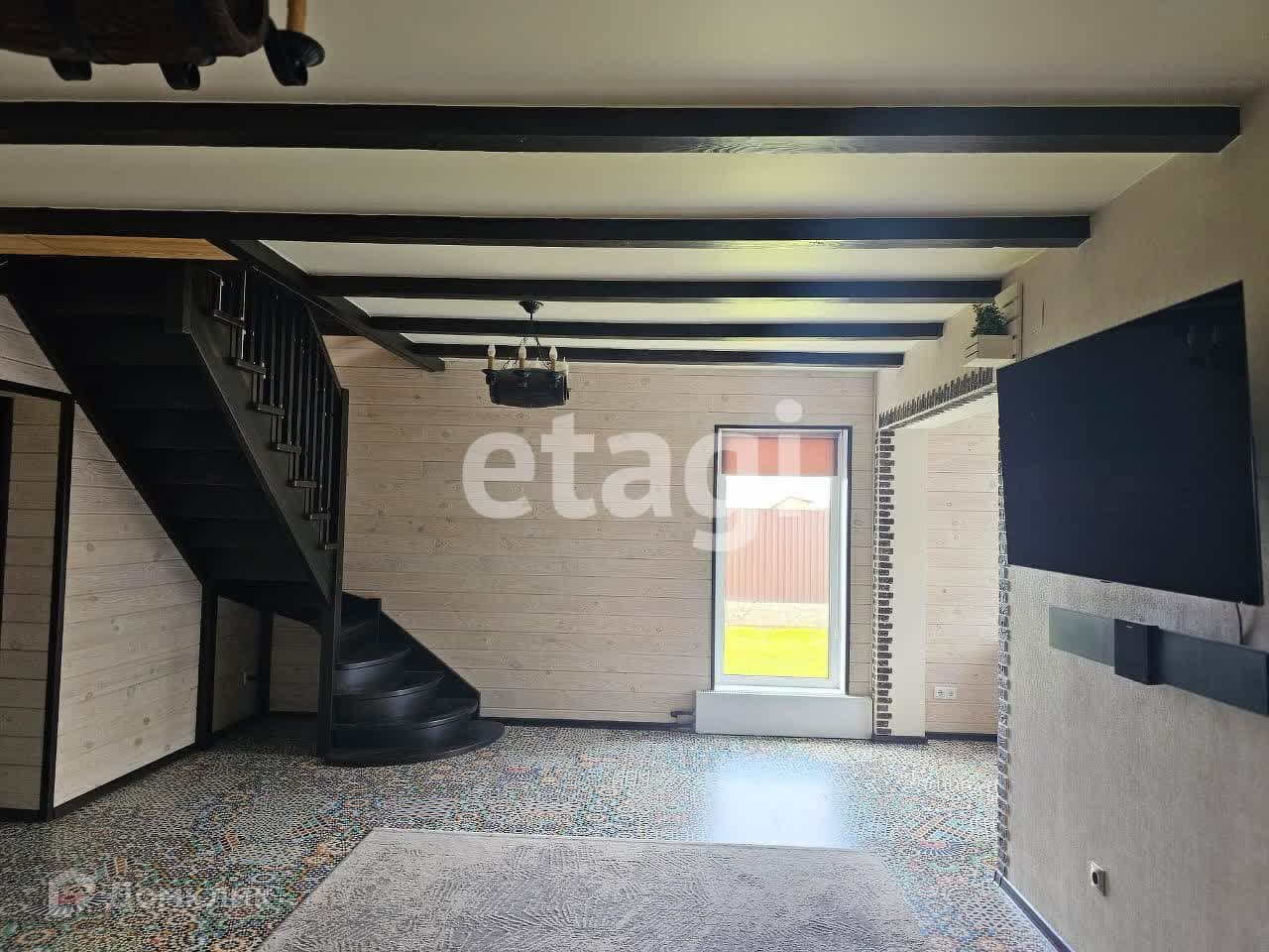 На первом этаже кухня, гостиная, санузел, выход в котельную из дома. Теплый пол.