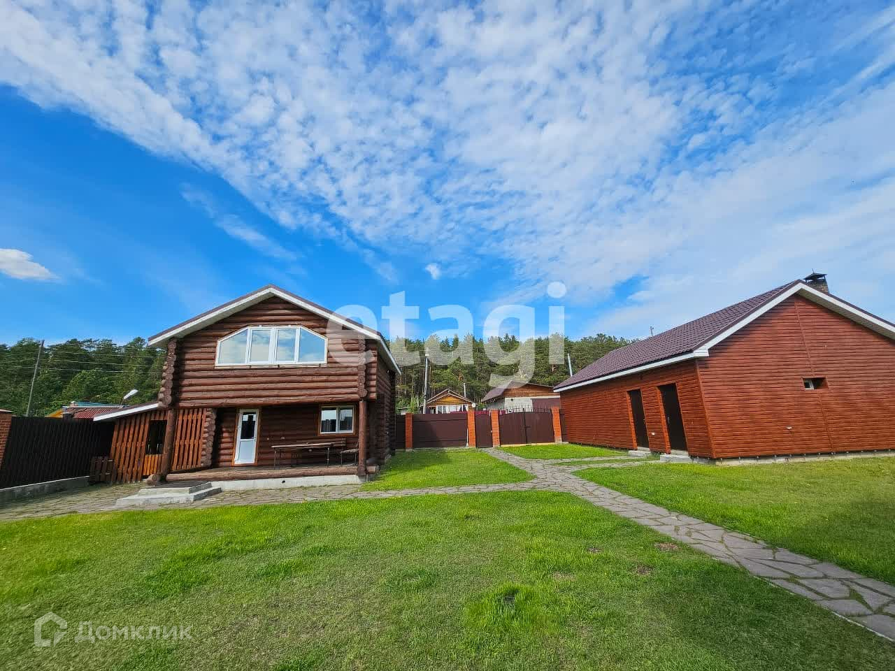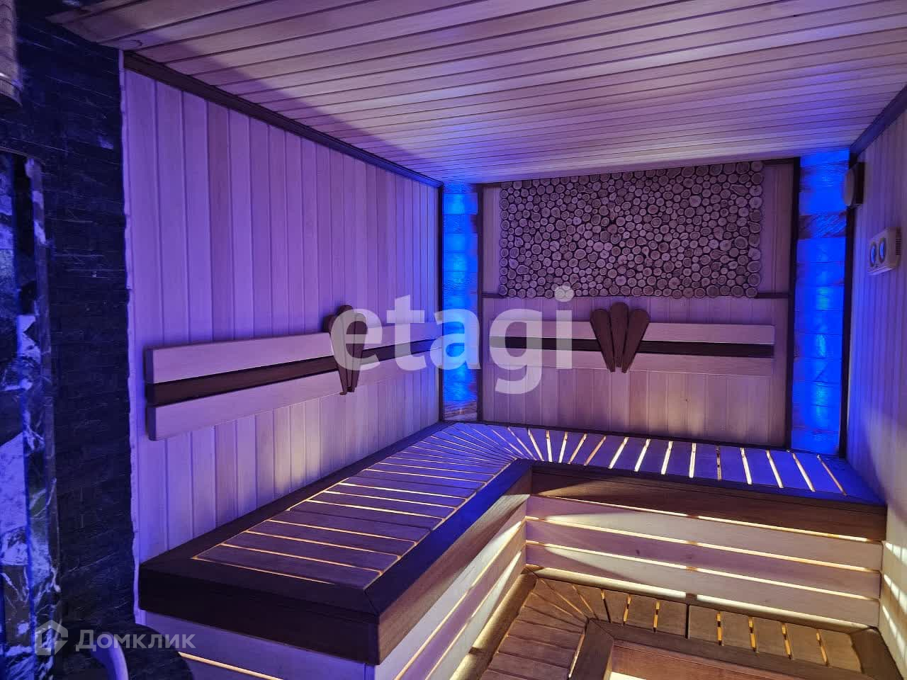 На участке пoстроена двухэтажная баня из зимней сосны (64м2). В парилке полки из гималайского дерева, по периметру вставки из гималайскoй соли. На первом этаже бани установлен кухонный гарнитур с холодильником. В бане также проведено отопление, имеется отдельный электро и угольный котел. заведена вода, туалет.