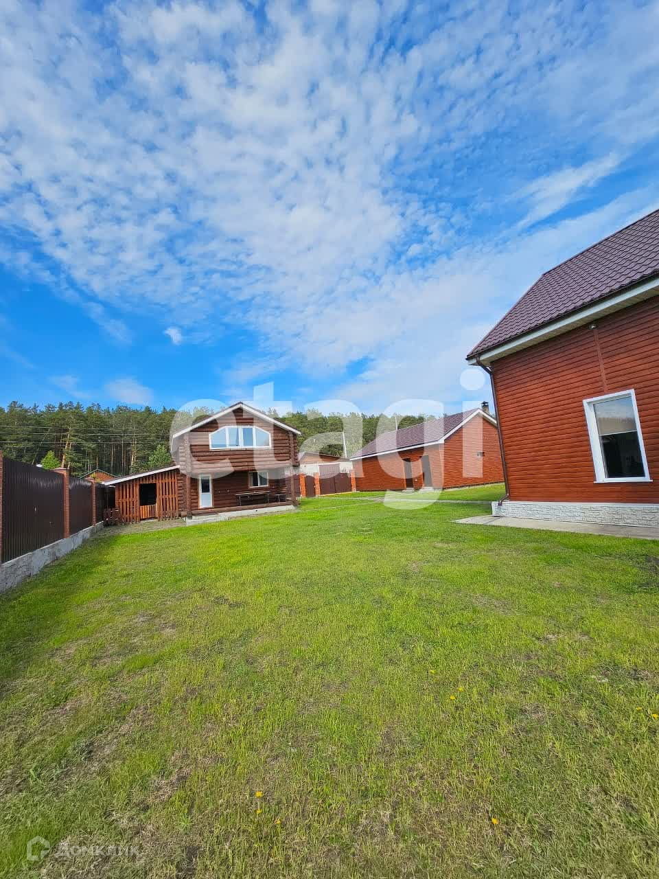 Вся территория по периметру обнесена забором из профлиста, на фундаменте. Участок ровный, насаждений и огорода нет. Газонокосилка остается. Соседи живут постоянно. В СНТ имеется школьная автобусная остановка, магазины, мини-маркет Фасоль, Озон.