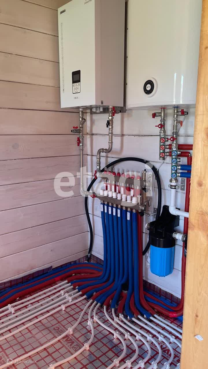 В доме расположены 3 спальни, кухня-гостиная с выходом на террасу, 2 совмещенных санузла, техническая комната (электрокотел, бойлер, щитовая). В доме есть теплый пол, французские окна в пол. Свет подключен, вода со скважины, есть септик.
