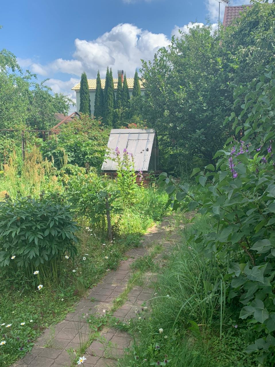 на участке: Летняя кухня, душ, туалет, хозблок, колодец, скважина, плодовые и ягодные растения и много цветов. Забор по периметру. МАГИСТРАЛЬНЫЙ ГАЗ по границе с возможностью подключения дома.