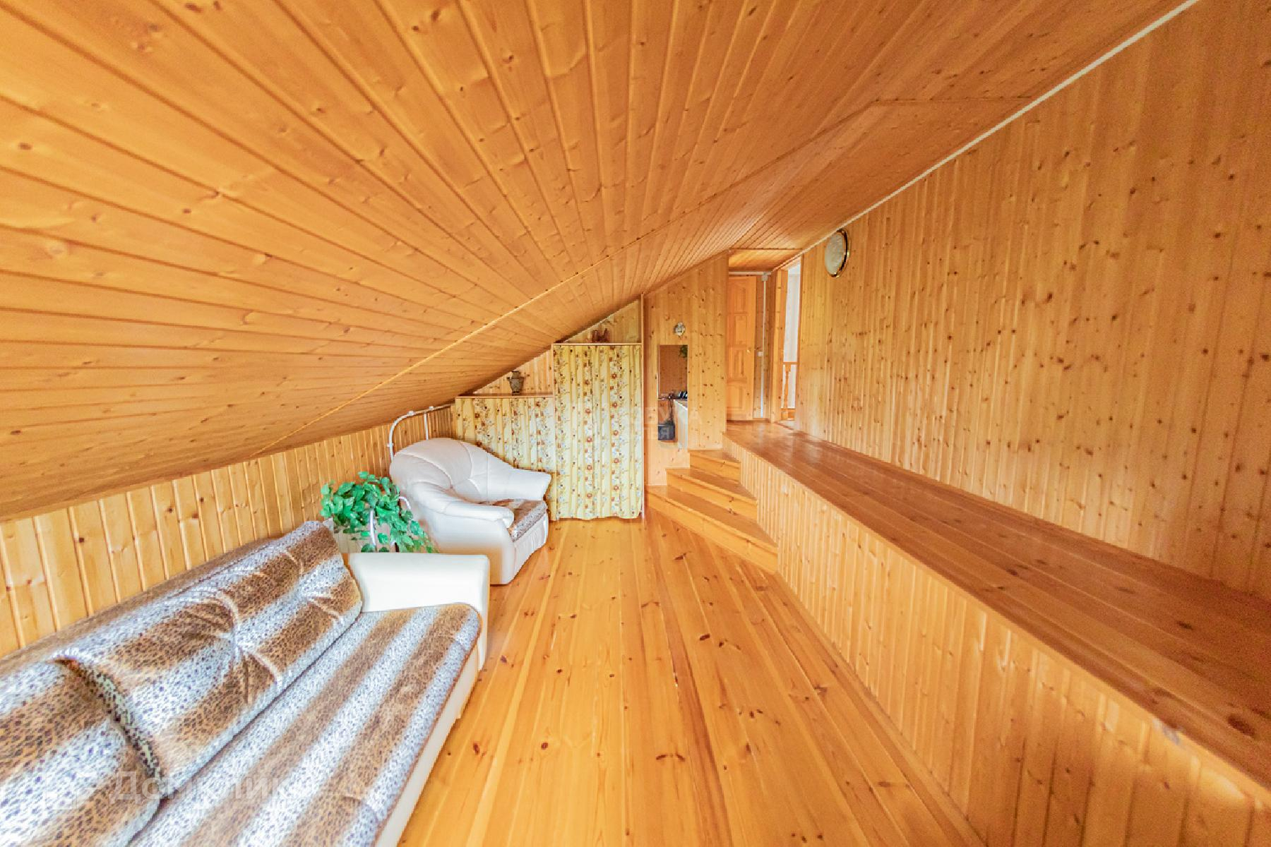 Продается уютный 2-этажный дом на участке 6 соток в СНТ "Эврика" с гаражом под общей крышей. Дом подключен к электричеству, газа нет, но есть возможность быстро подключить. Есть печь, электрическая система отопления, санузел с горячей водой (водонагреватель на 70л), туалетом и душевой кабиной (можно жить круглый год). Дом бревенчатый с обкладкой кирпичом. Мансарда каркасно-обшивная с утеплением. Водостоки, дренаж по периметру. Полы в доме - линолеум, стены - обои и вагонка. Окна пластик. В доме сухо и тихо. На первом этаже находится гостиная, кухня с печью и санузел, на втором - 2 спальни и 2 помещения под хоз. нужды. Прекрасное место для отдыха и проживания семьи с детьми.