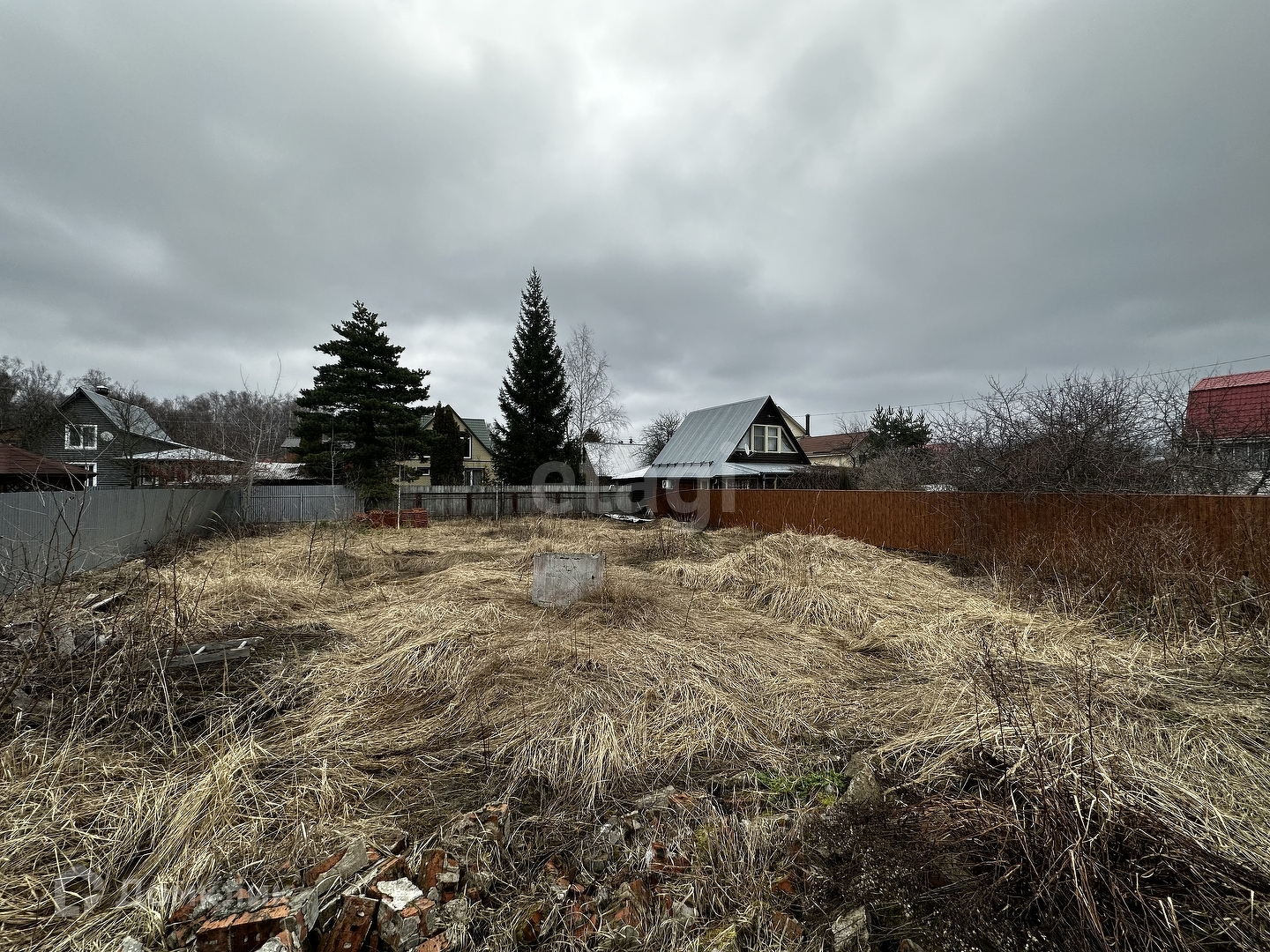 Участок ровный, сухой, правильной формы. Огорожен забором из проф листа.