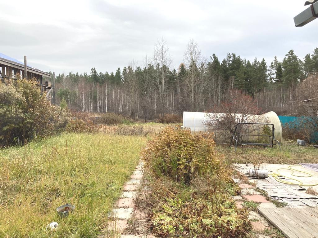 Участок 8 соток, разработан, огорожен. На участке - беседка, баня, гараж, навес. В наличии все насаждения - от клубники до кустарниковых. Рядом лес.