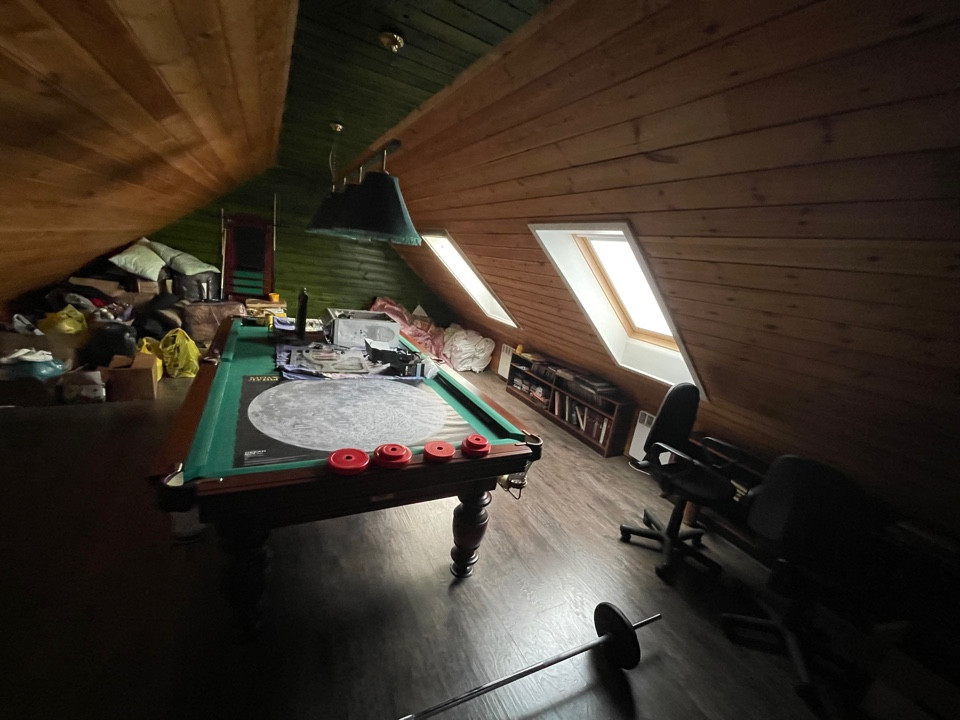 Две спальни , большая мансарда бильярд , вместительный санузел , где есть душевая и ванна, дорогая плитка.
