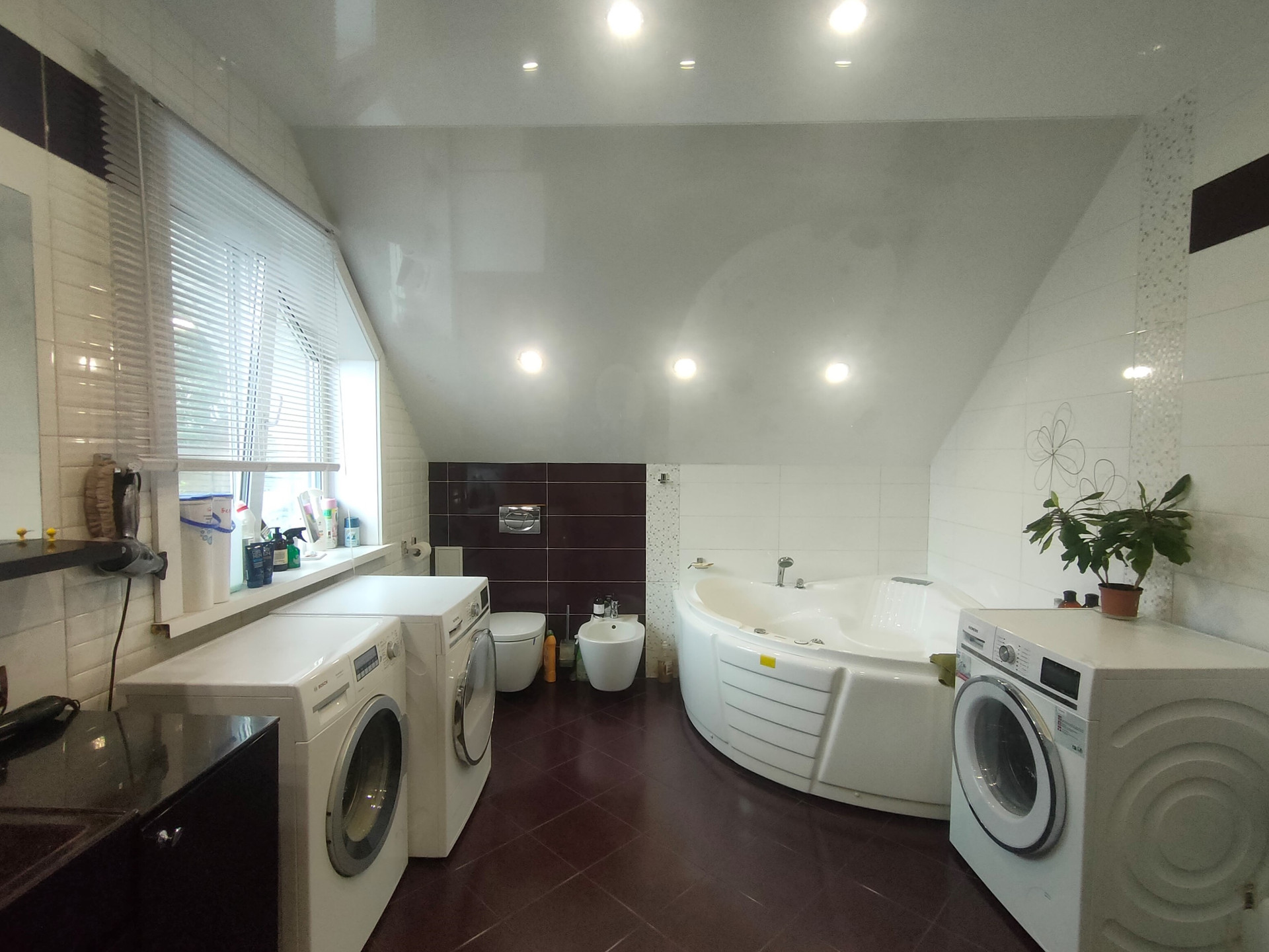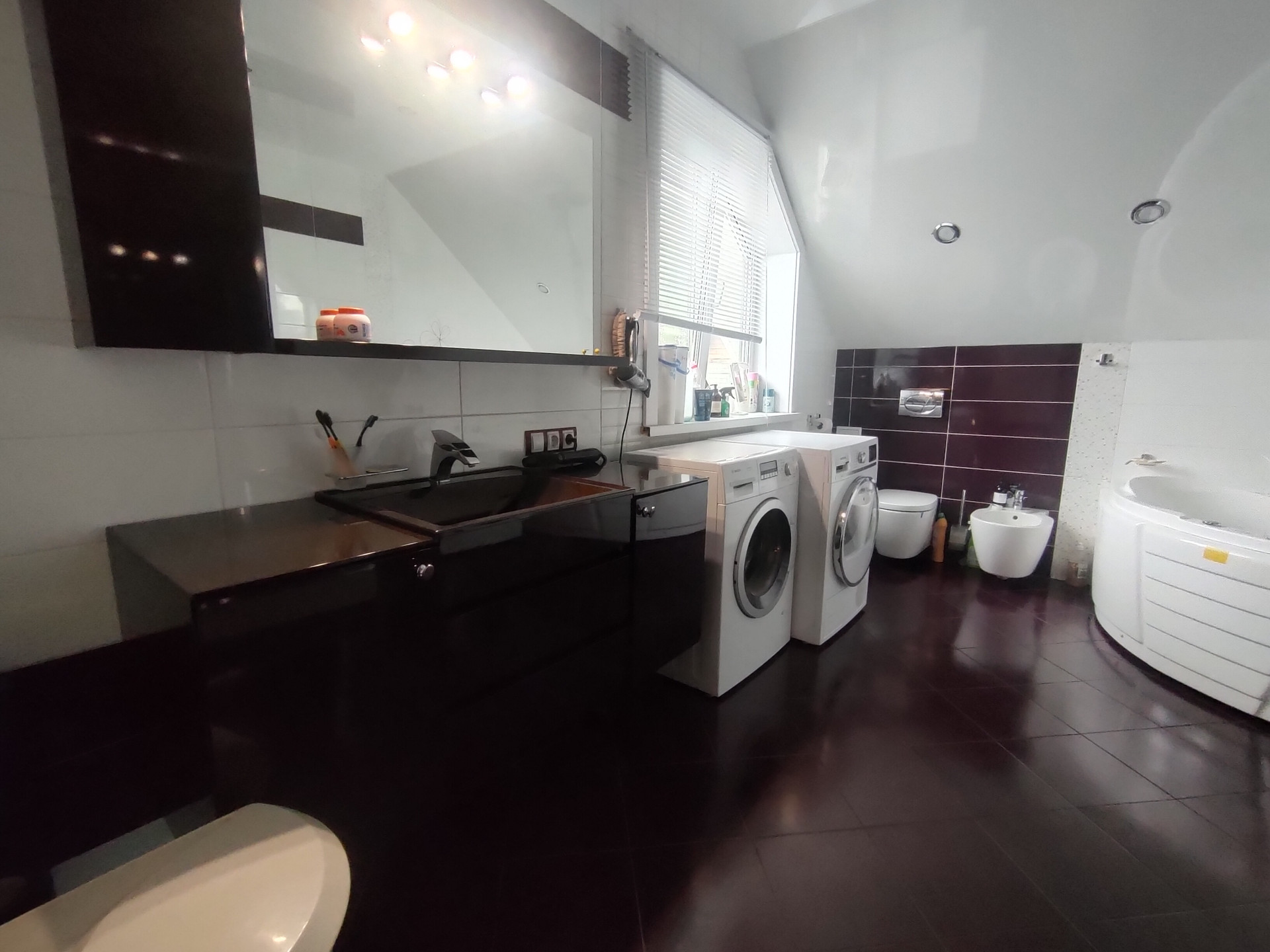 На этаже расположен сан узел душевой кабиной и джакузи,